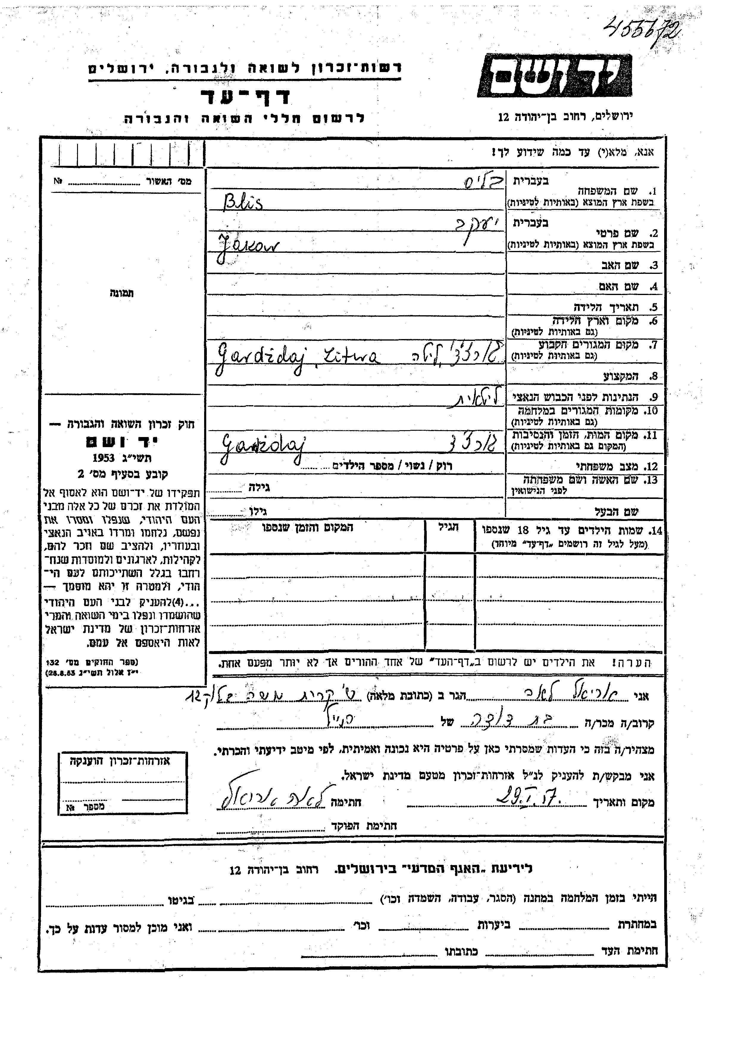 Jakow Blis. Vor dem Zweiten Weltkrieg lebte er in Gardzdaj, Litauen. Während des Krieges war er in Gardzdaj, Litauen.