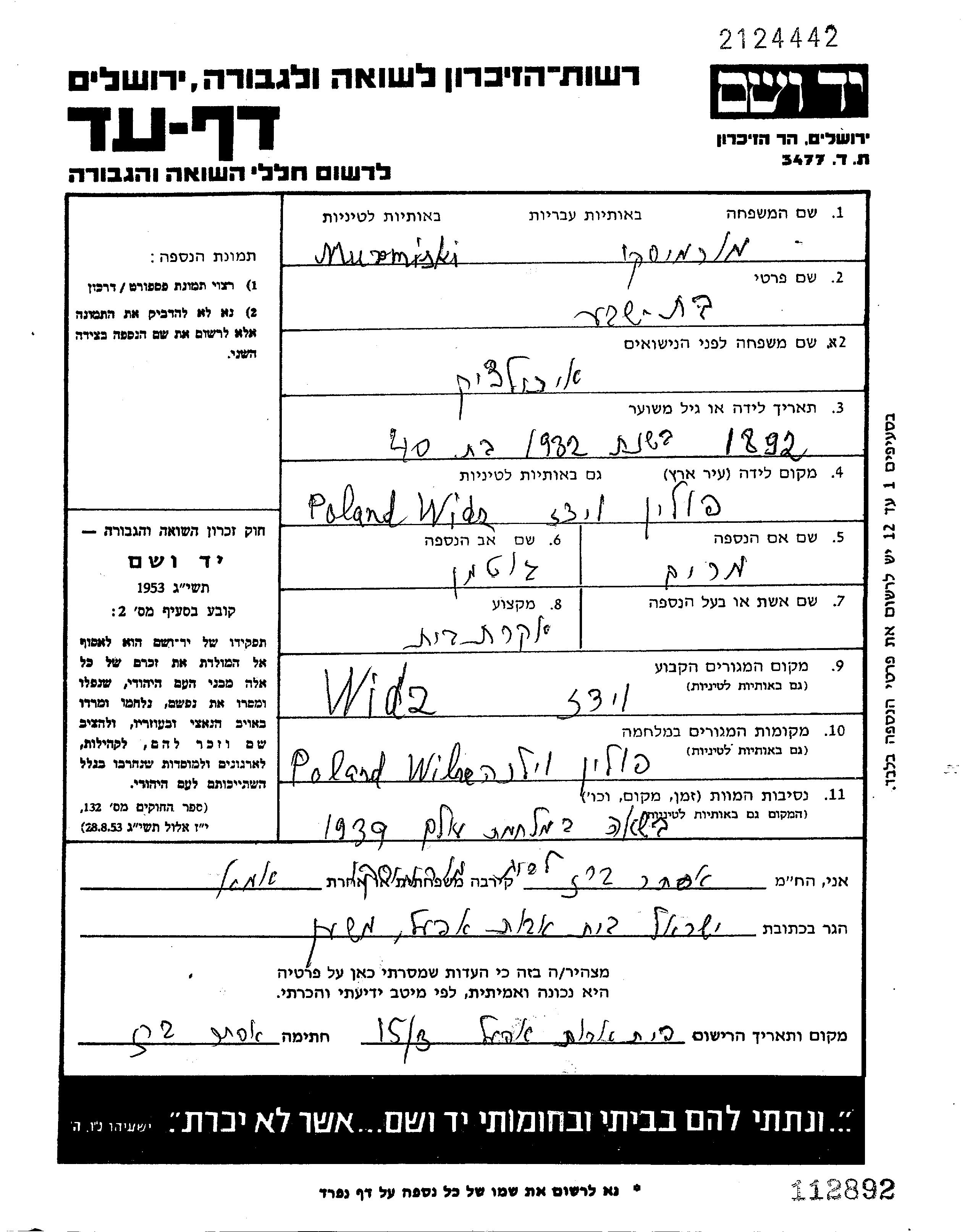Batsheva Murmiski, geb. Iekhilchik wurde im Jahr 1892 in Widze, Polen geboren. Sie war Hausfrau. Vor dem Zweiten Weltkrieg lebte sie in Widze, Polen.