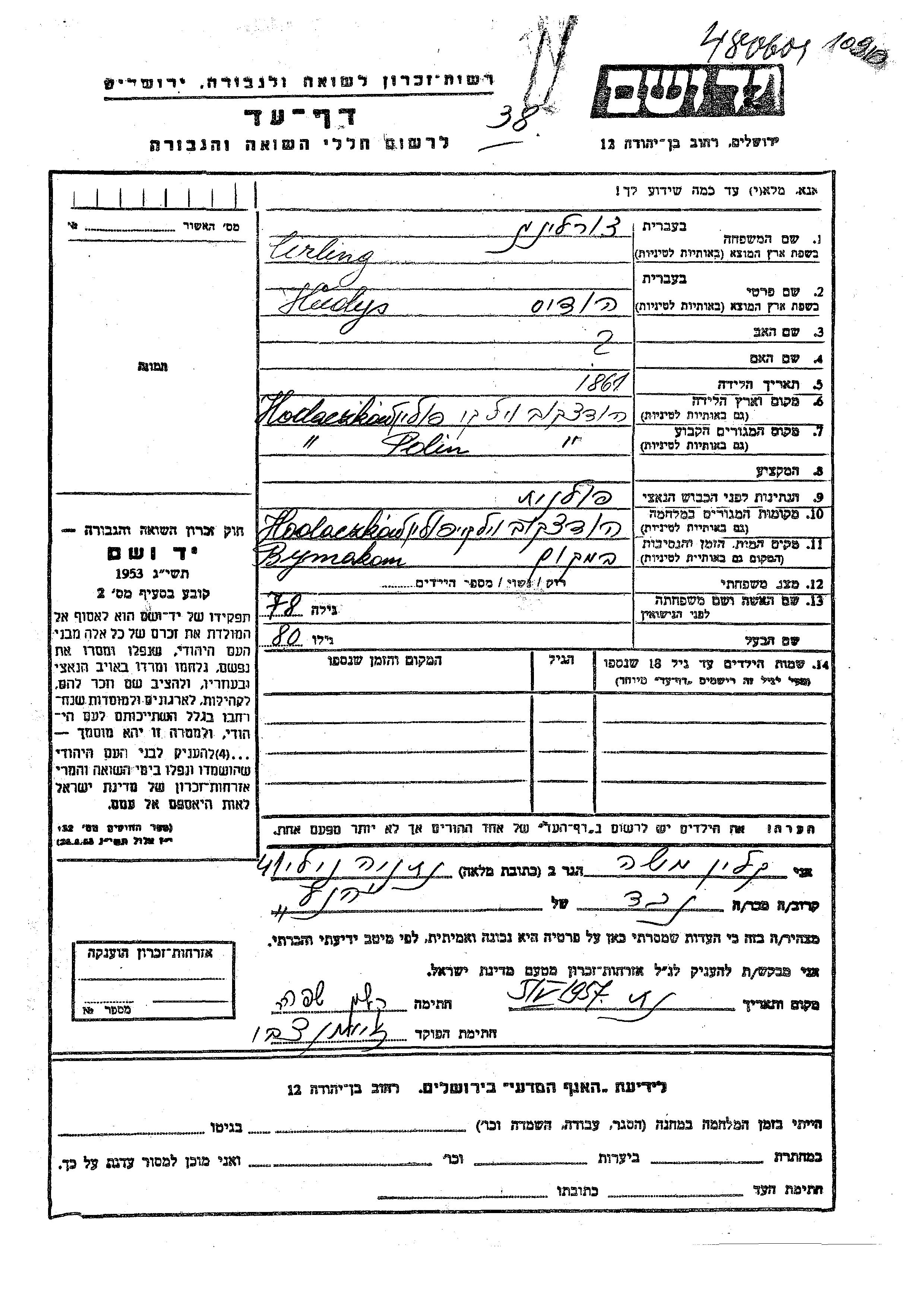 Hudys Cirling wurde im Jahr 1861 in Hodaczkow Wielki, Polen geboren. Vor dem Zweiten Weltkrieg lebte sie in Hodaczkow Wielki, Polen. Während des Krieges war sie in Hodaczkow Wielki, Polen.