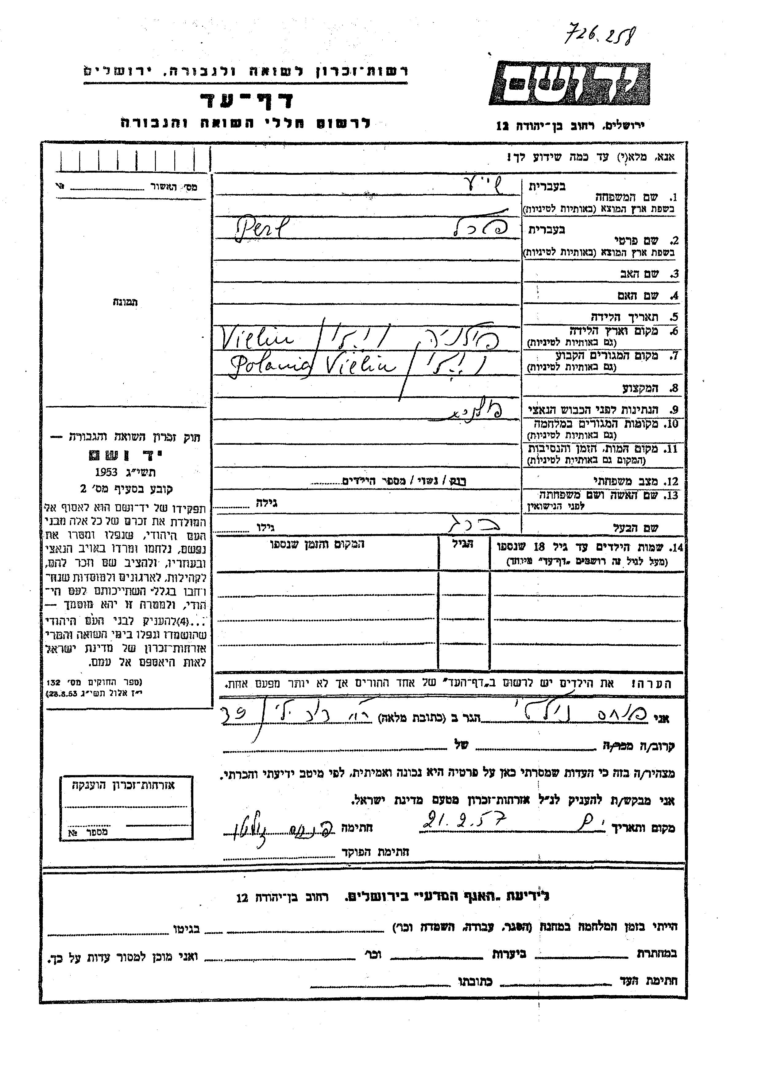 Perl Shia wurde in Vielun, Polen geboren. Sie war mit Ber Verheiratet. Vor dem Zweiten Weltkrieg lebte sie in Vielun, Polen.