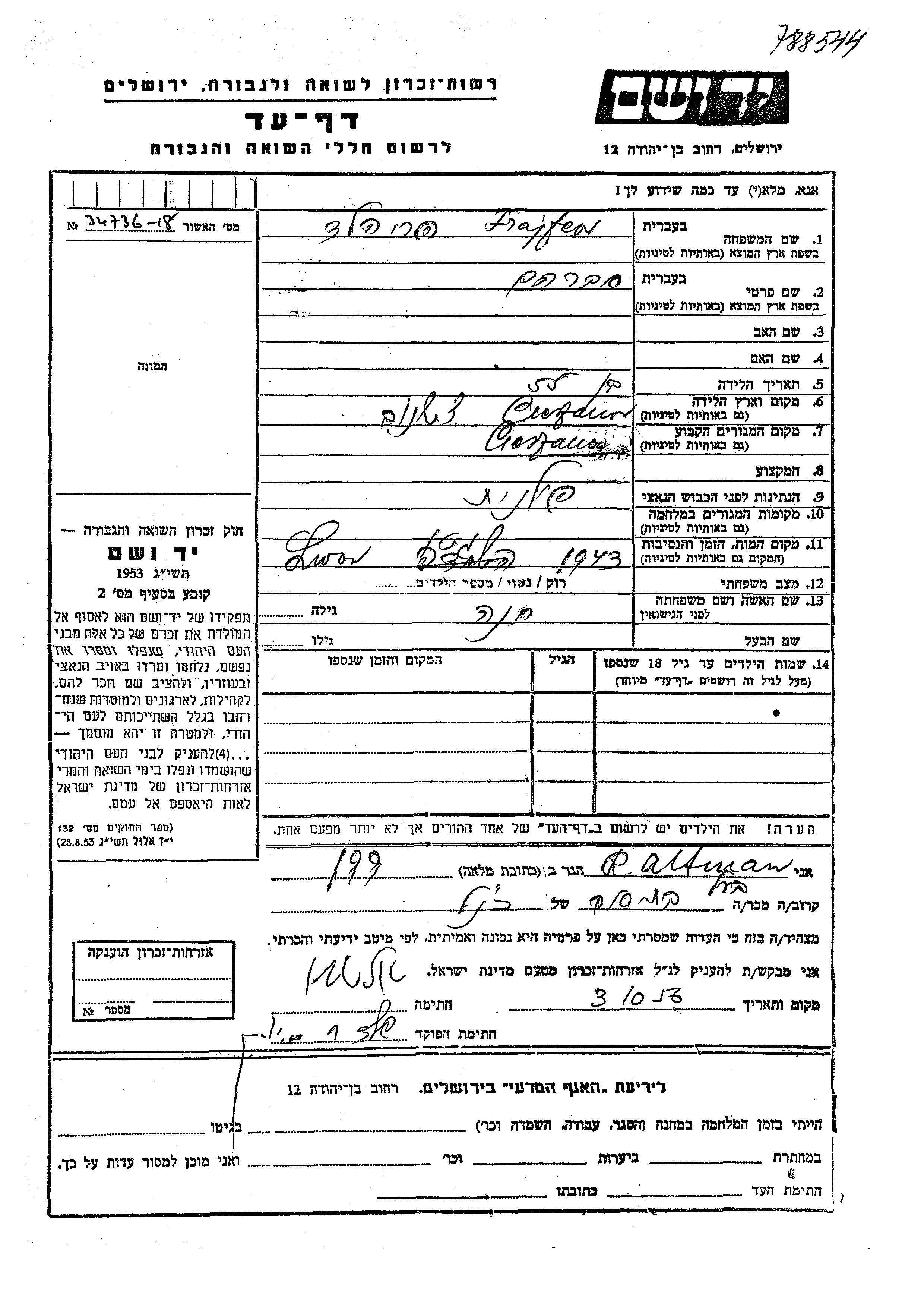 Avraham wurde in der Schoah ermordet. Todesort: Lwow, Polen im Jahr 1943.