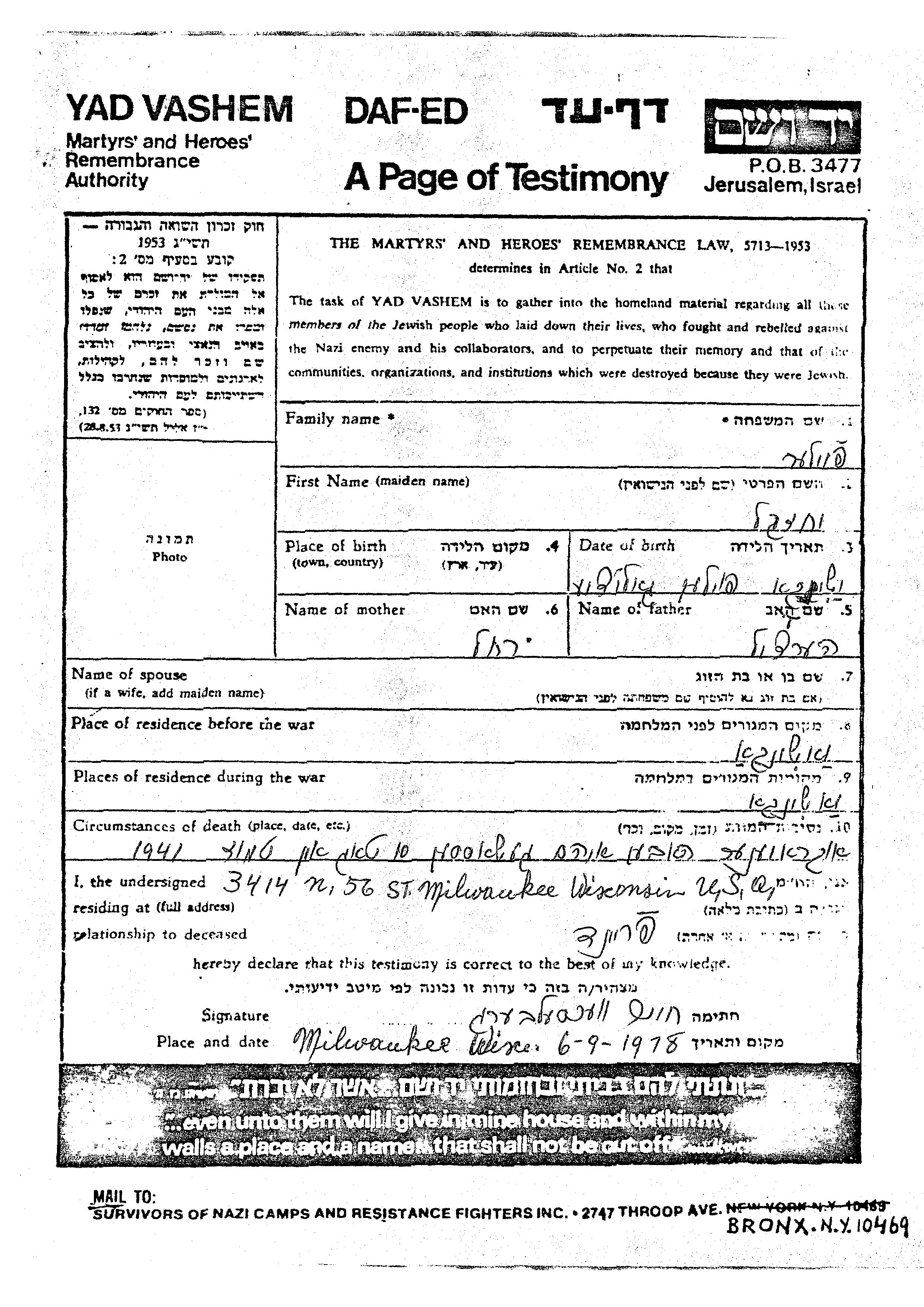 Feiler Yekhezkel Wiszenka, Polen Gedenkblatt