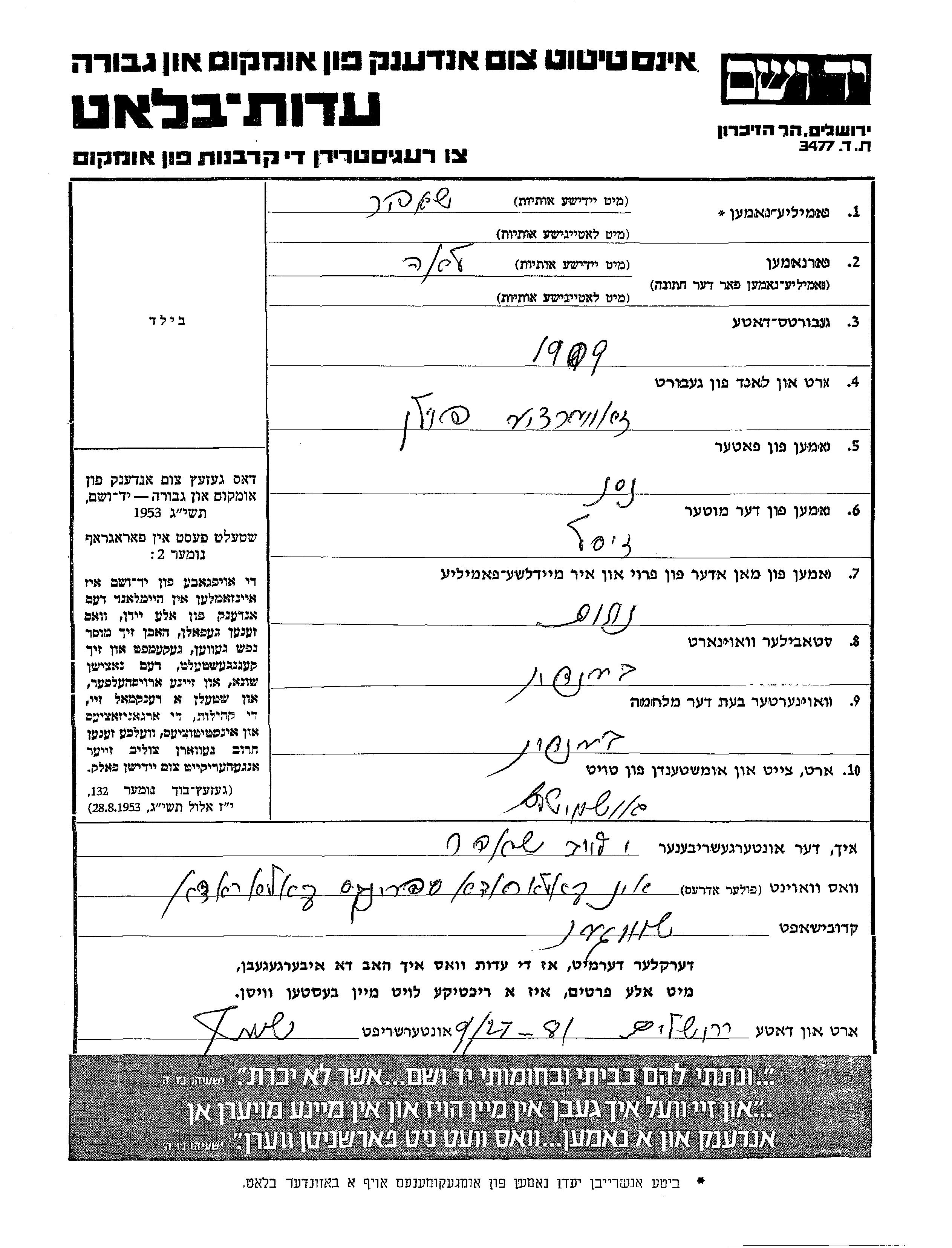 Shafir Lea 1909 Bendzin, Polen Gedenkblatt