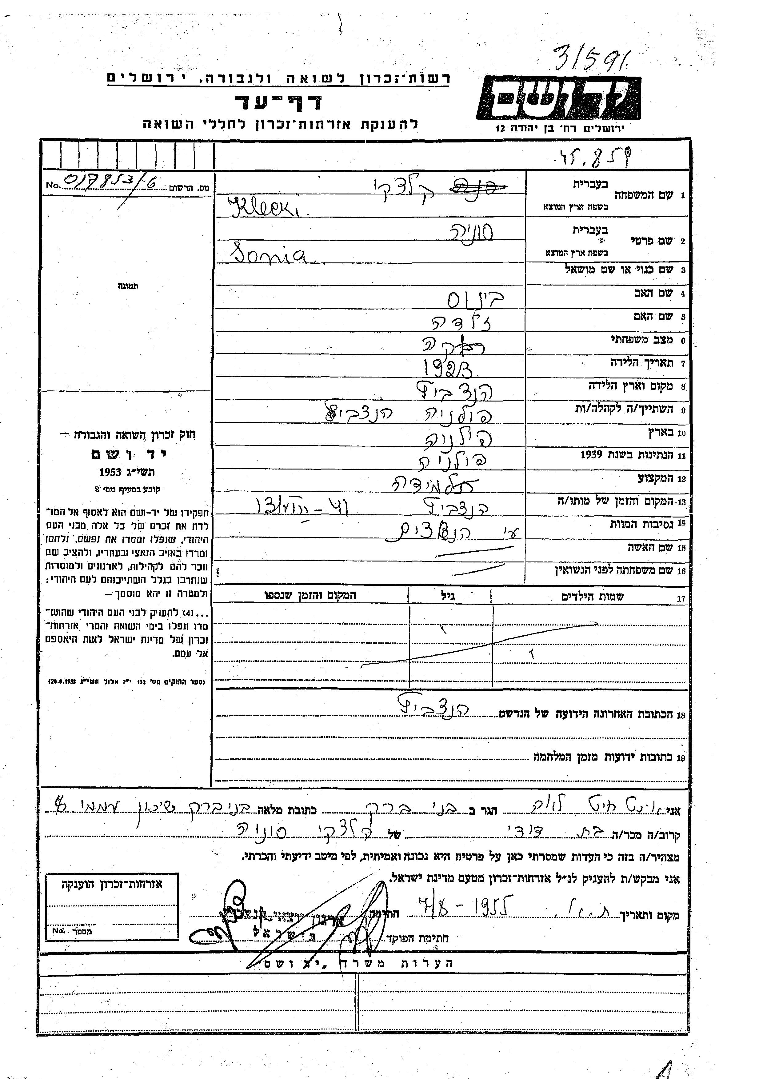 Sonia wurde in der Schoah ermordet. Todesort: Hancewicze, Polen im Jahr 13/08/1941.