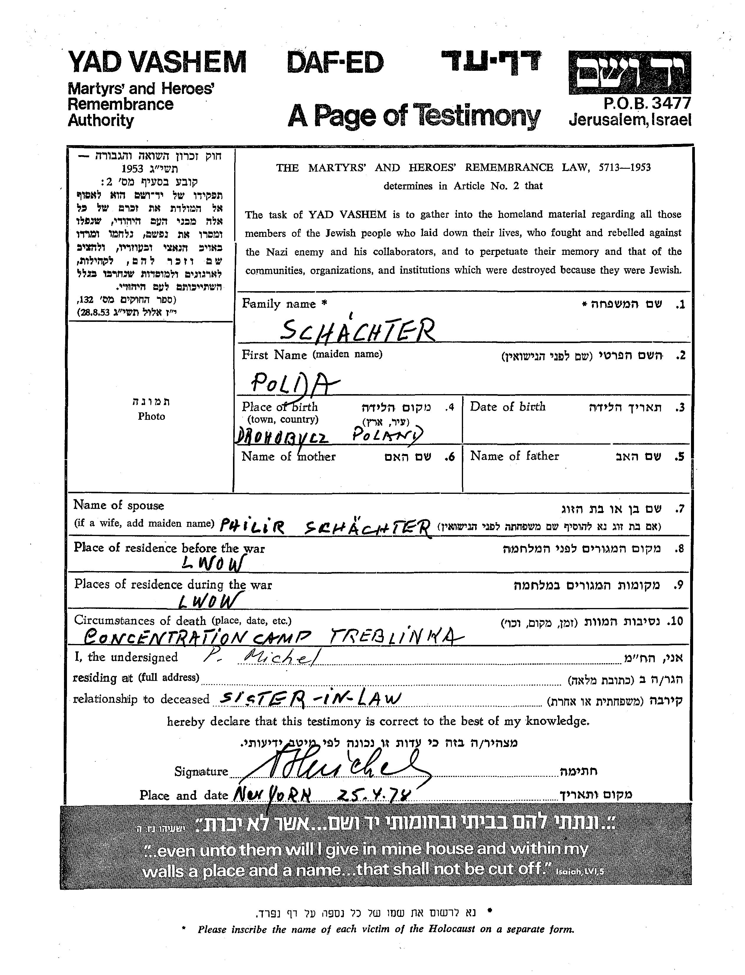 Polda Schachter wurde in Drohobycz, Polen geboren. Vor dem Zweiten Weltkrieg lebte er in Lwow, Polen. Während des Krieges war er in Lwow, Polen.