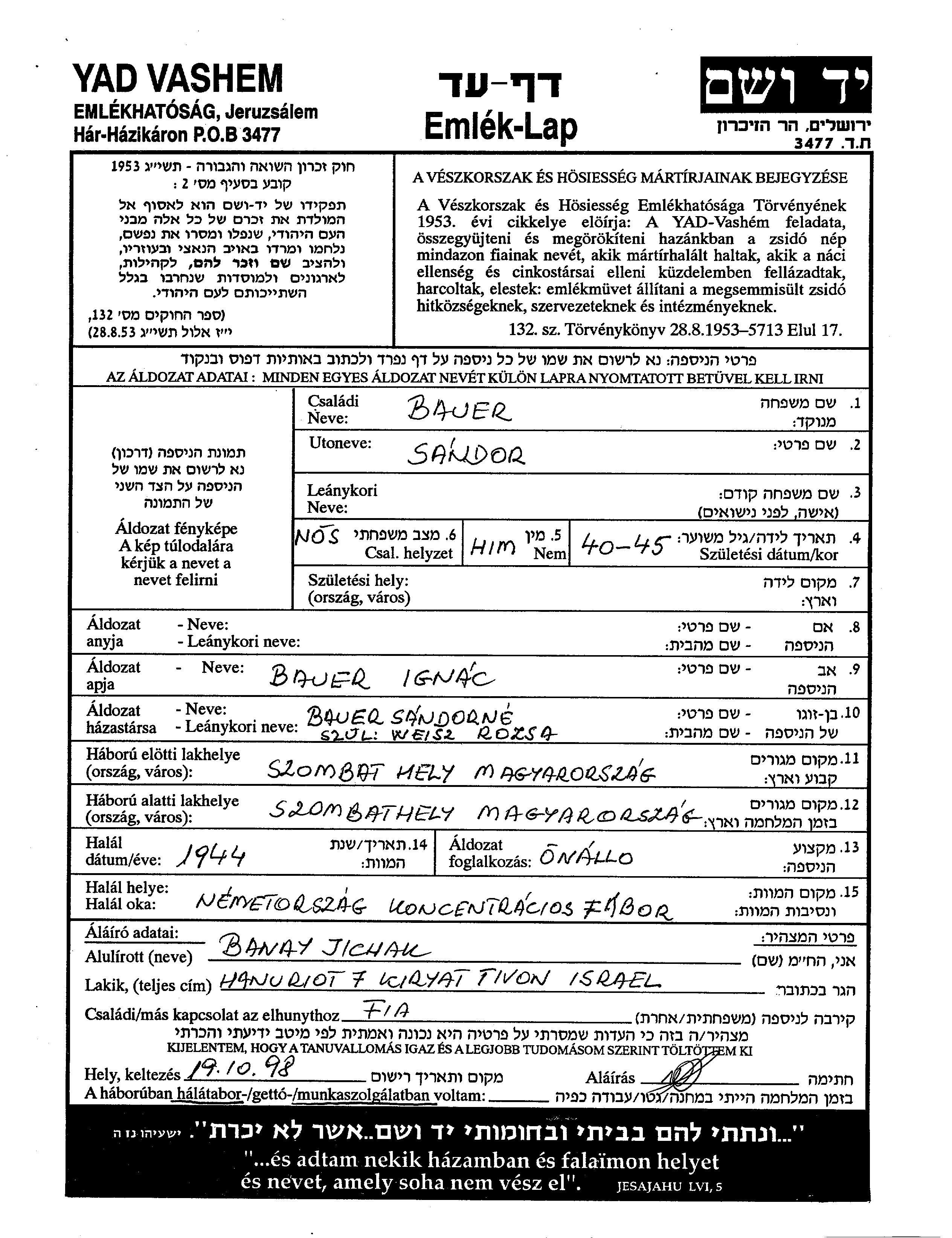 Aufenthaltsort während des Krieges/Schoah