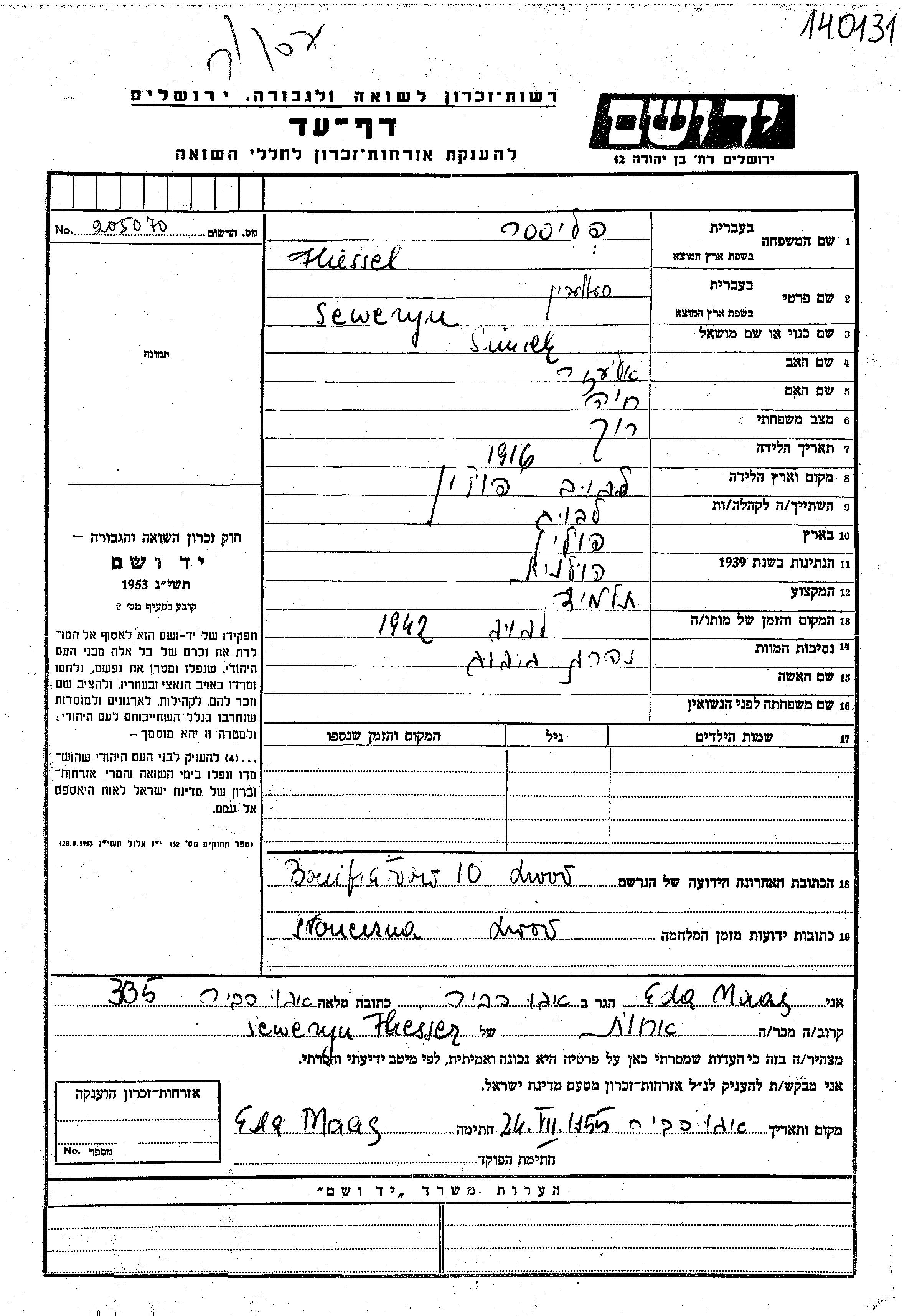 Seweryn wurde in der Schoah ermordet. Todesort: unbekannt im Jahr 1942.