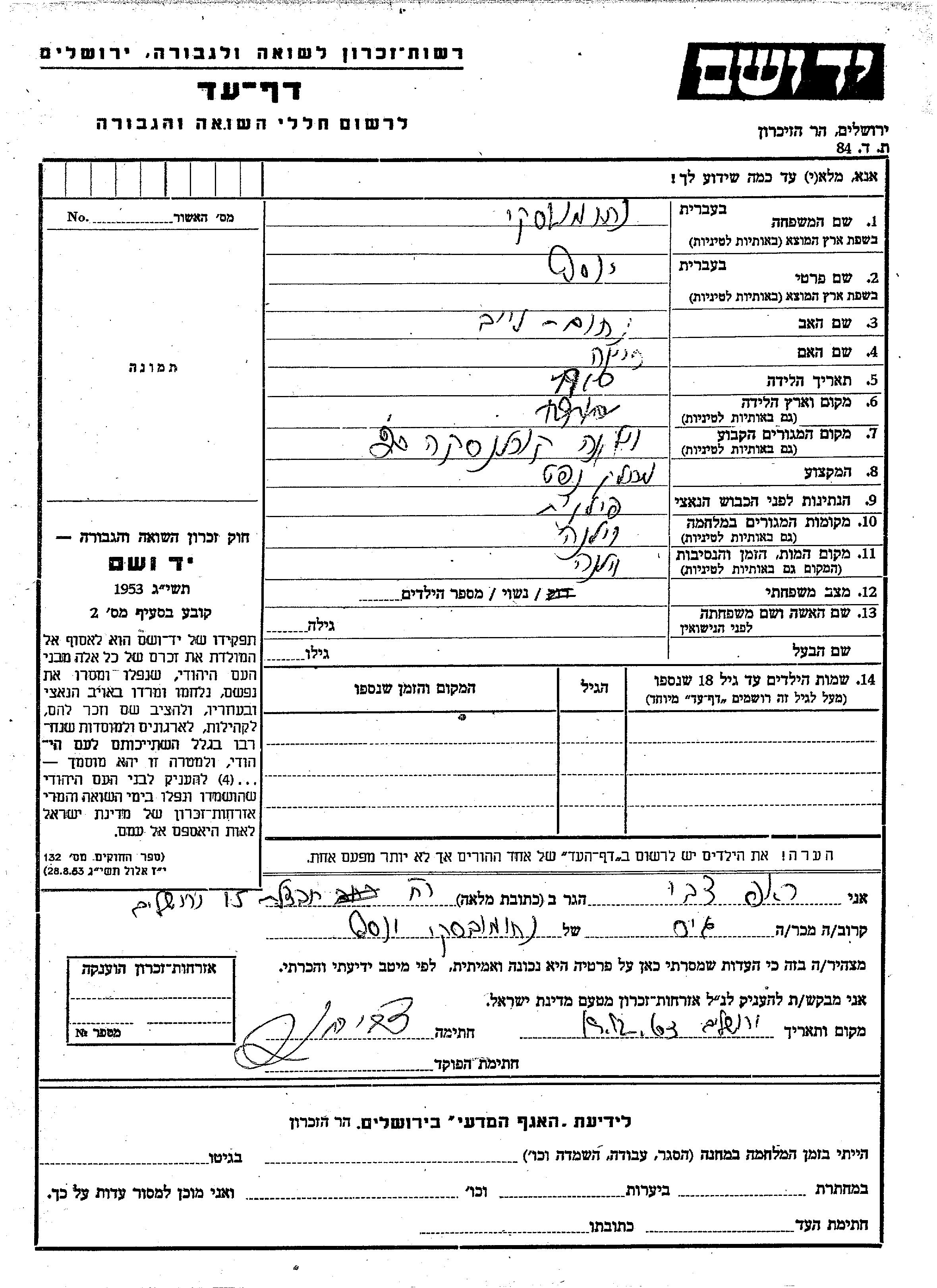Yosef wurde in der Schoah ermordet. Todesort: Wilno, Polen.