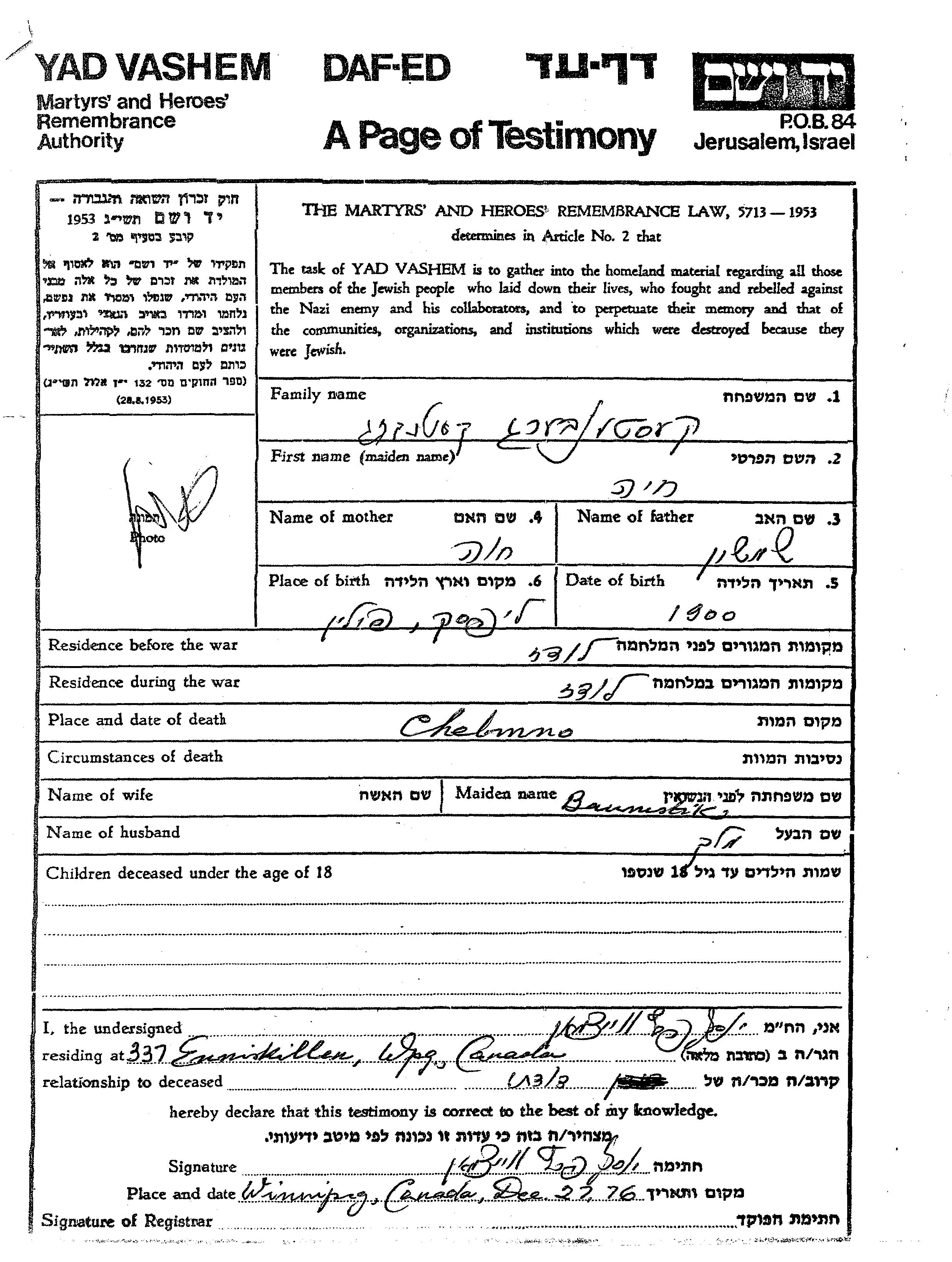 Kestenberg Khaia 1900 Lodz, Polen Gedenkblatt