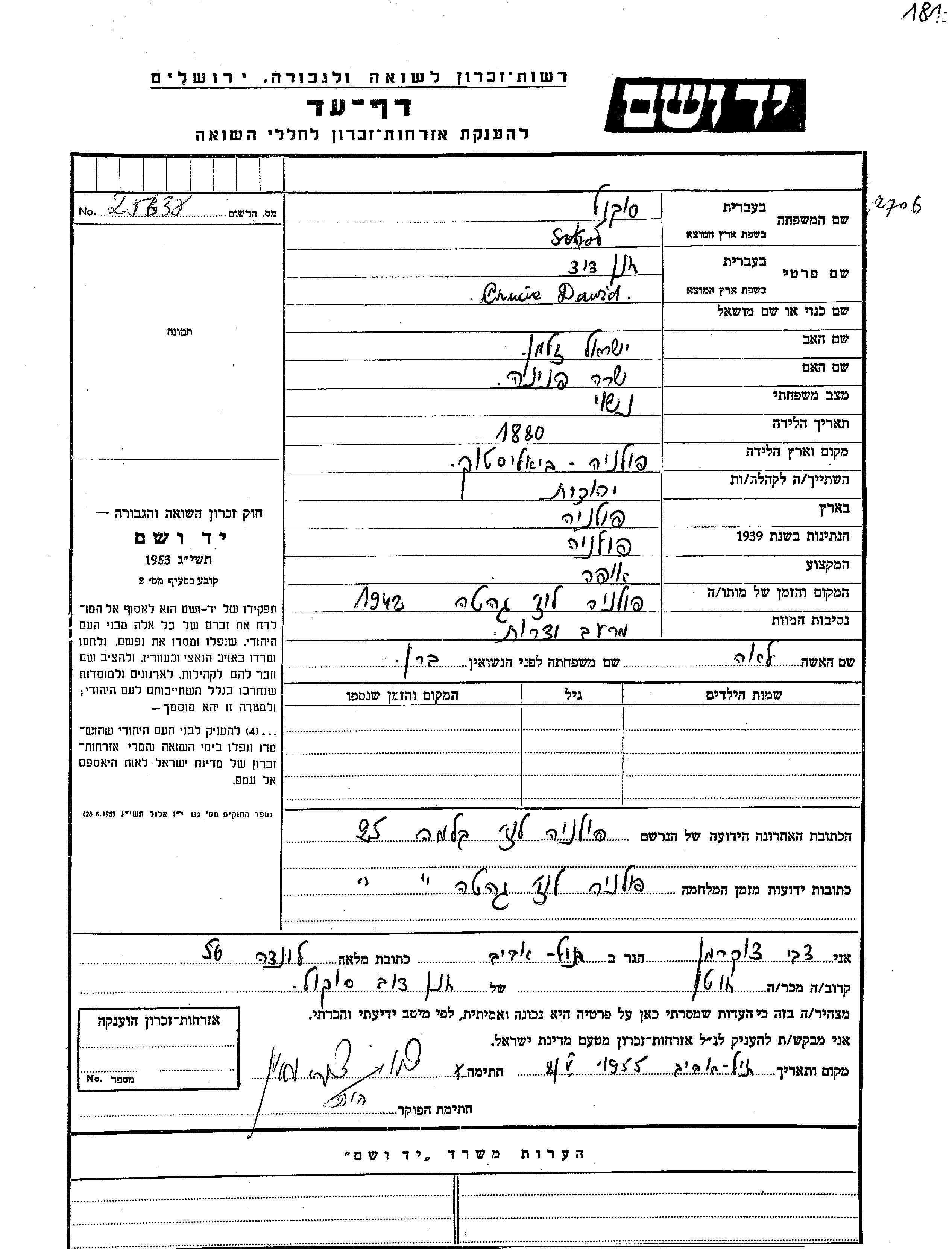 Chune Dawid wurde in der Schoah ermordet. Todesort: Lodz, Polen im Jahr 1942.