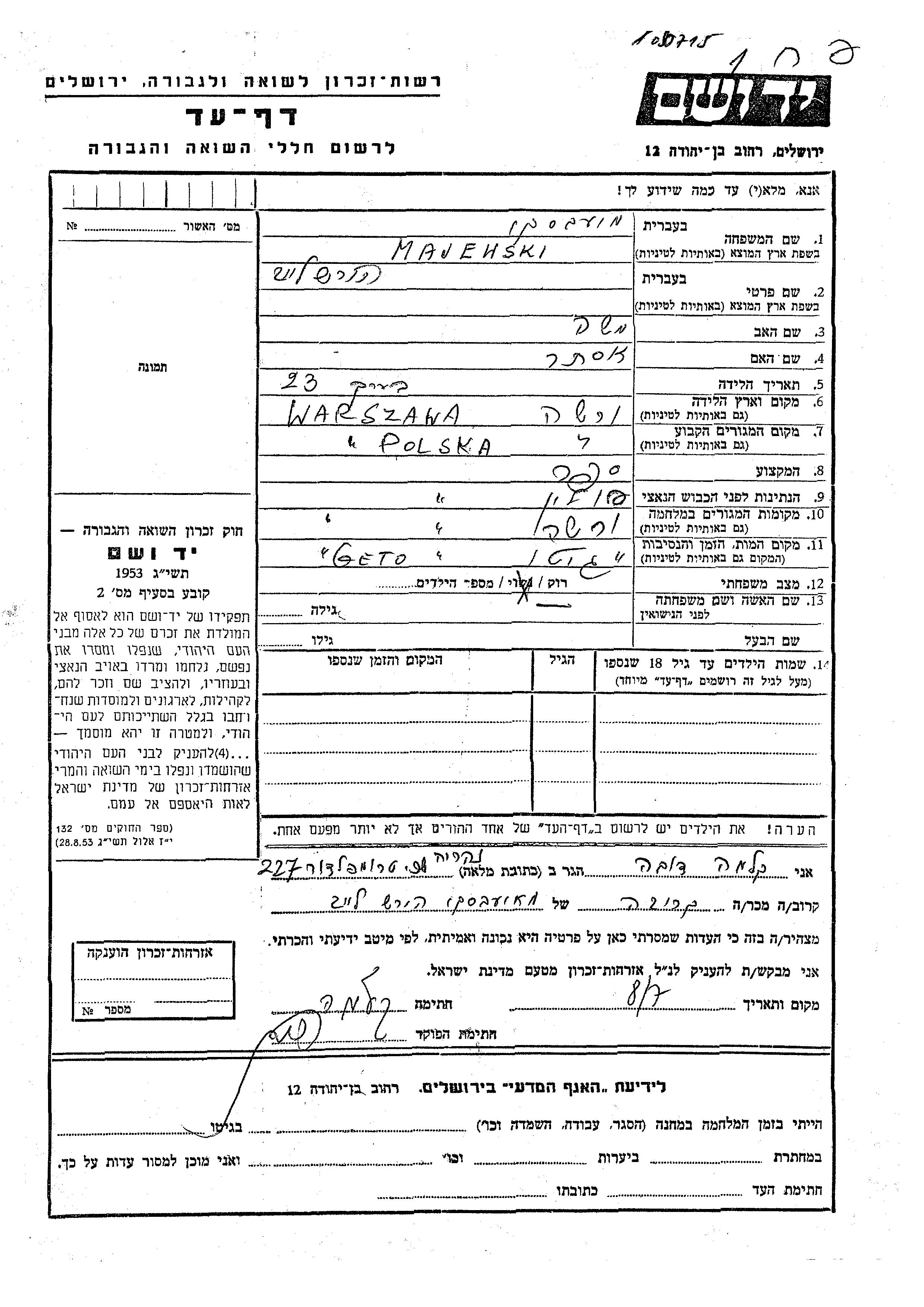 Hirsh Leib wurde in der Schoah ermordet. Todesort: Warszawa, Polen.