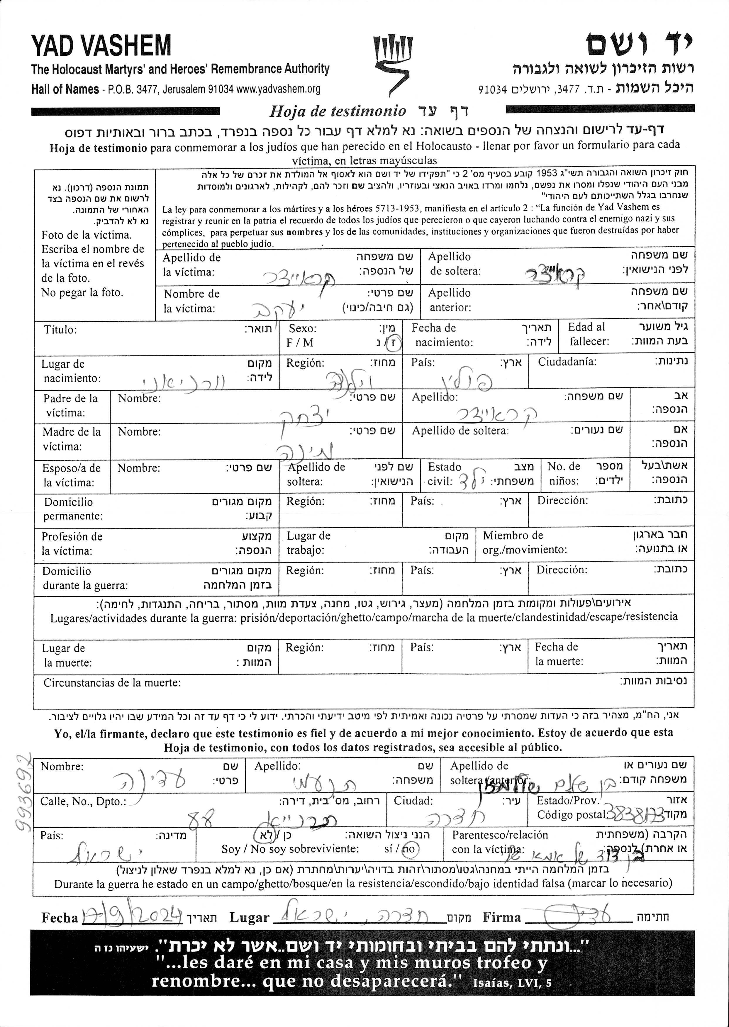 Yaakov wurde in der Schoah ermordet. Todesort: unbekannter Ort.
