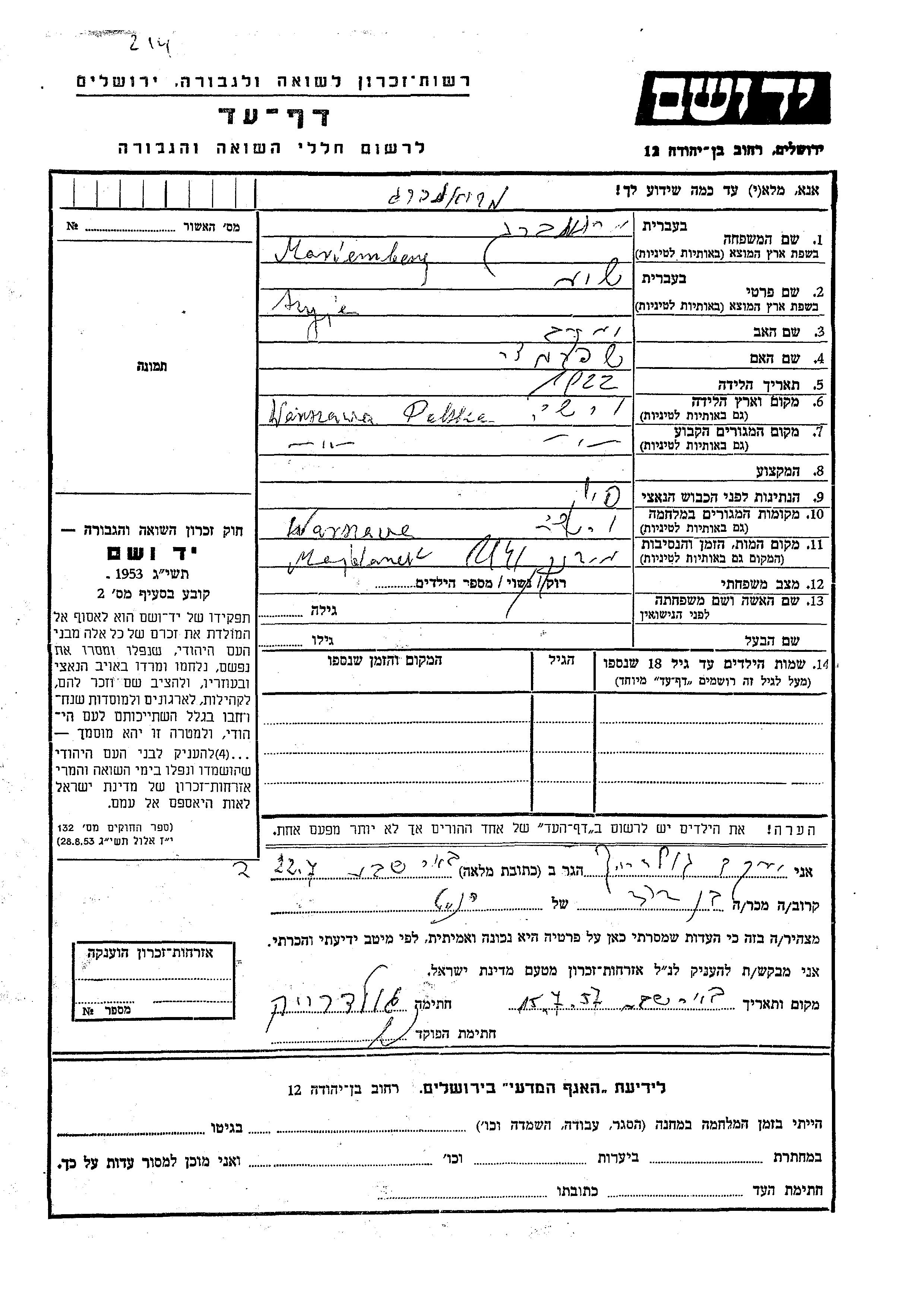 Szyje Marienberg wurde im Jahr 1922 in Warszawa, Polen geboren. Er war der Sohn von Yaakov und Shprintza. Er war Ledig. Vor dem Zweiten Weltkrieg lebte er in Warszawa, Polen. Während des Krieges war er in Warszawa, Polen.
