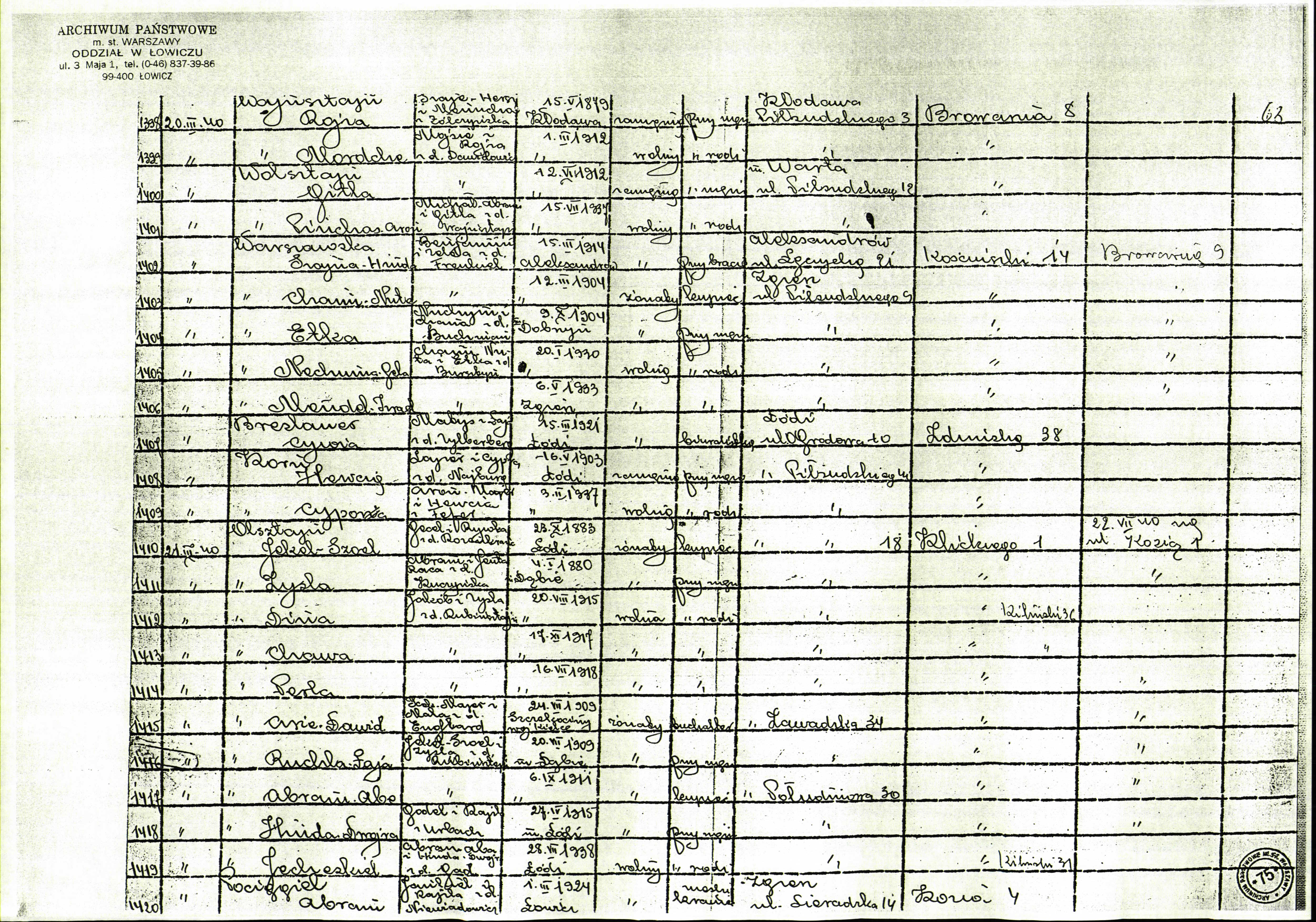 Pociagiel | Abram | 1924 | Zgierz, Polen | Deportiertenliste |