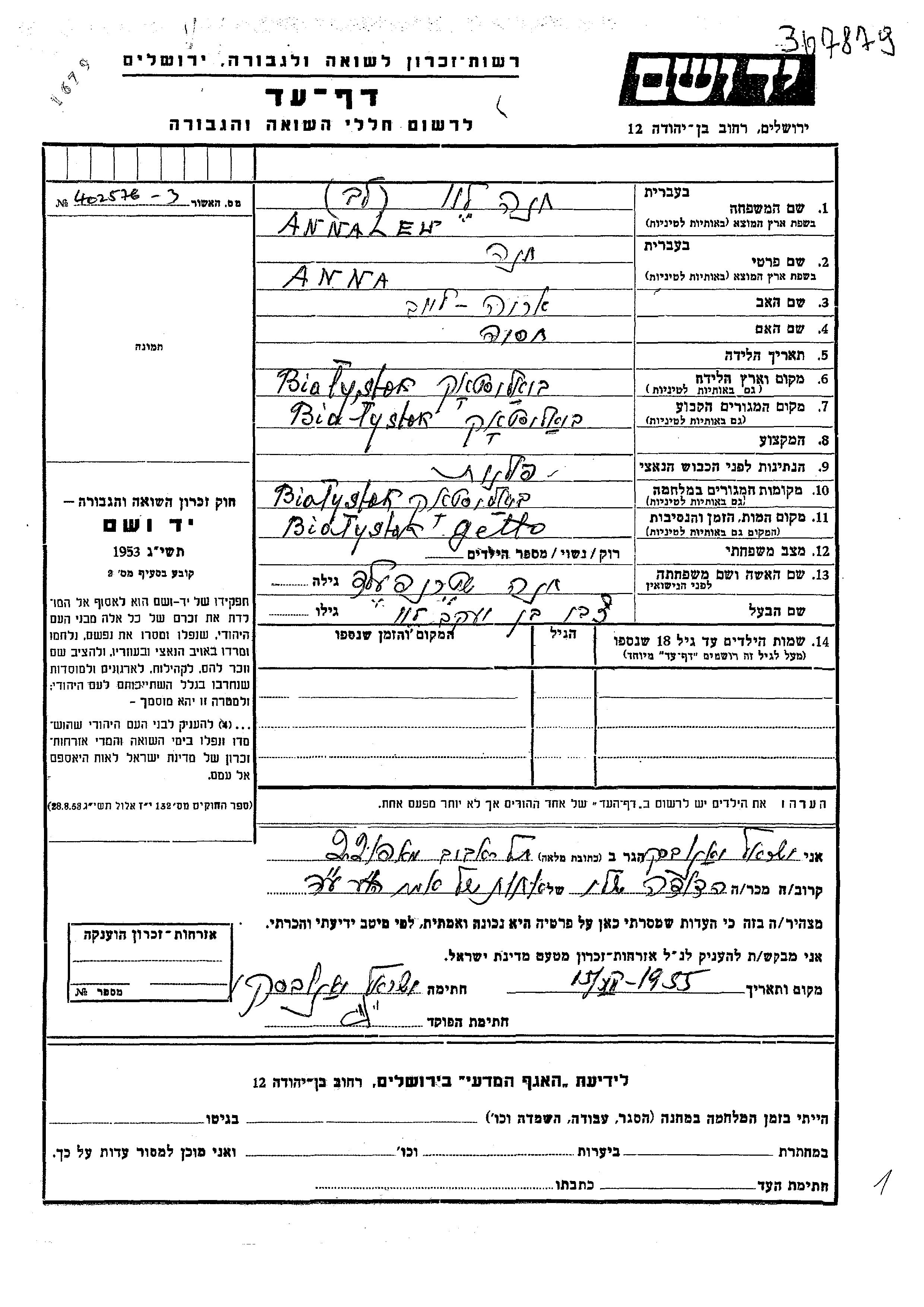 Anna Khana wurde in der Schoah ermordet. Todesort: Bialystok, Polen.