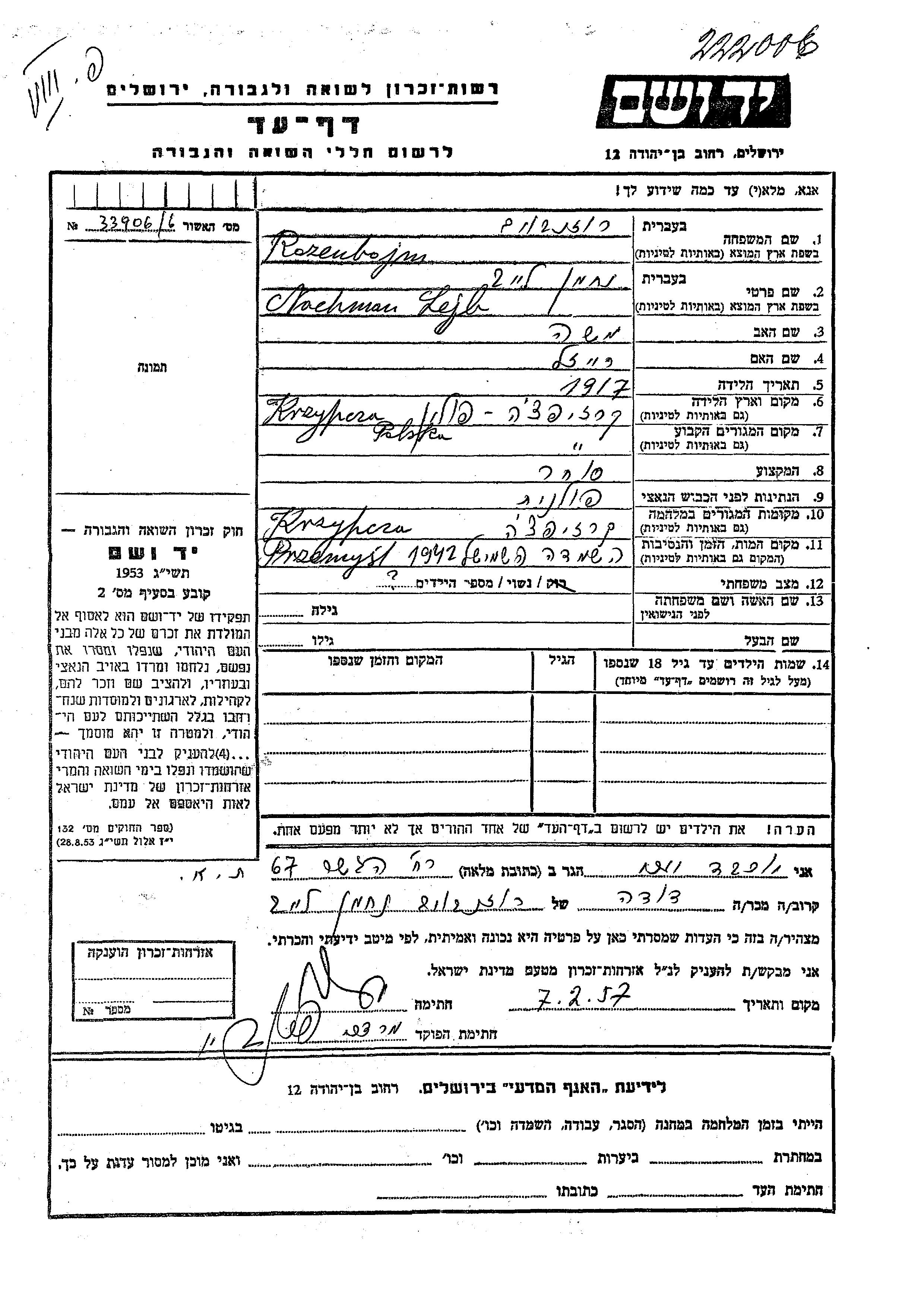 Rozenbojm Nachman Lejb 1917 Krzepice, Polen Gedenkblatt