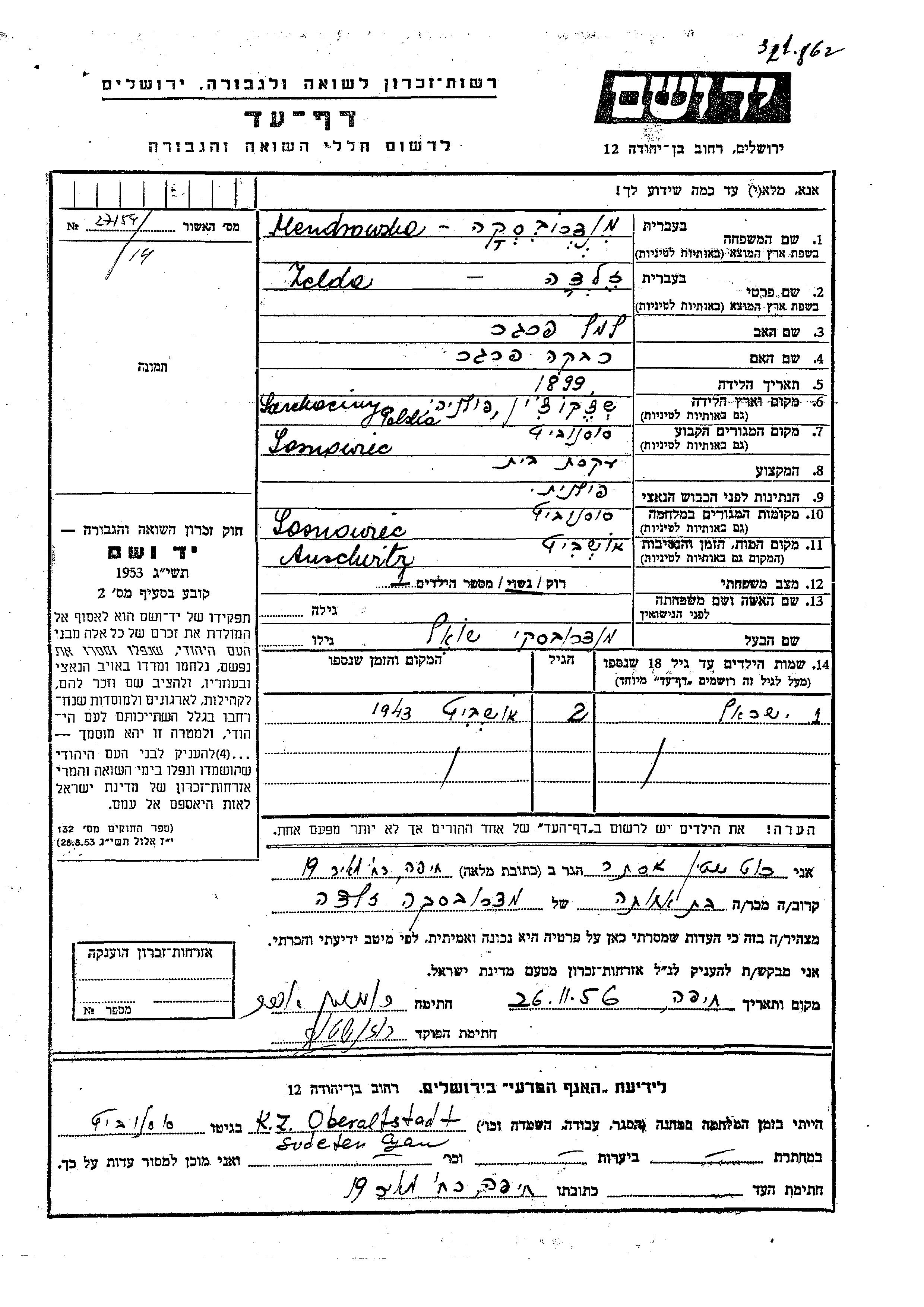 Zelde wurde in der Schoah ermordet. Todesort: Auschwitz, Polen.