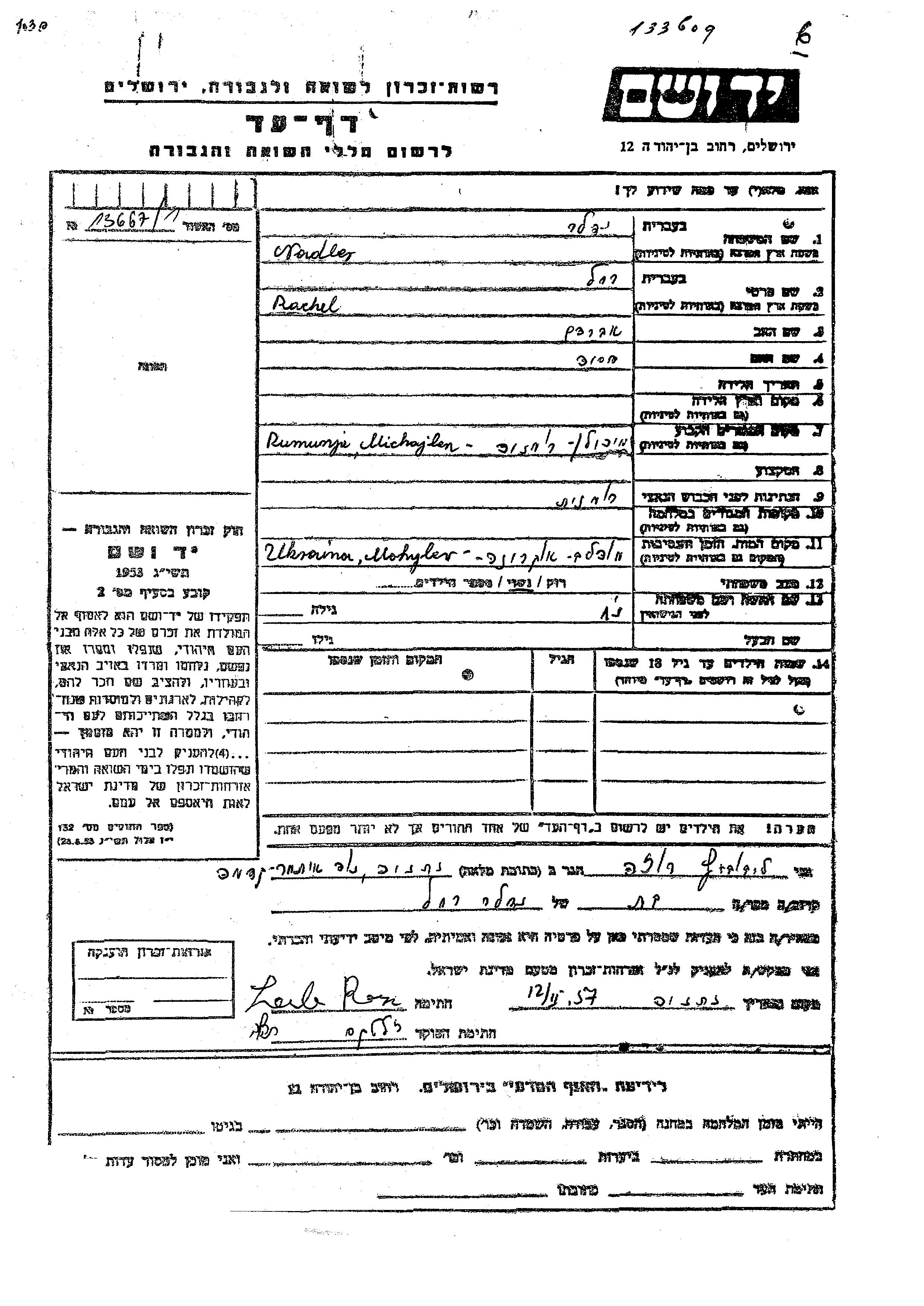 Rachel wurde in der Schoah ermordet. Todesort: Ukraine (UdSSR).