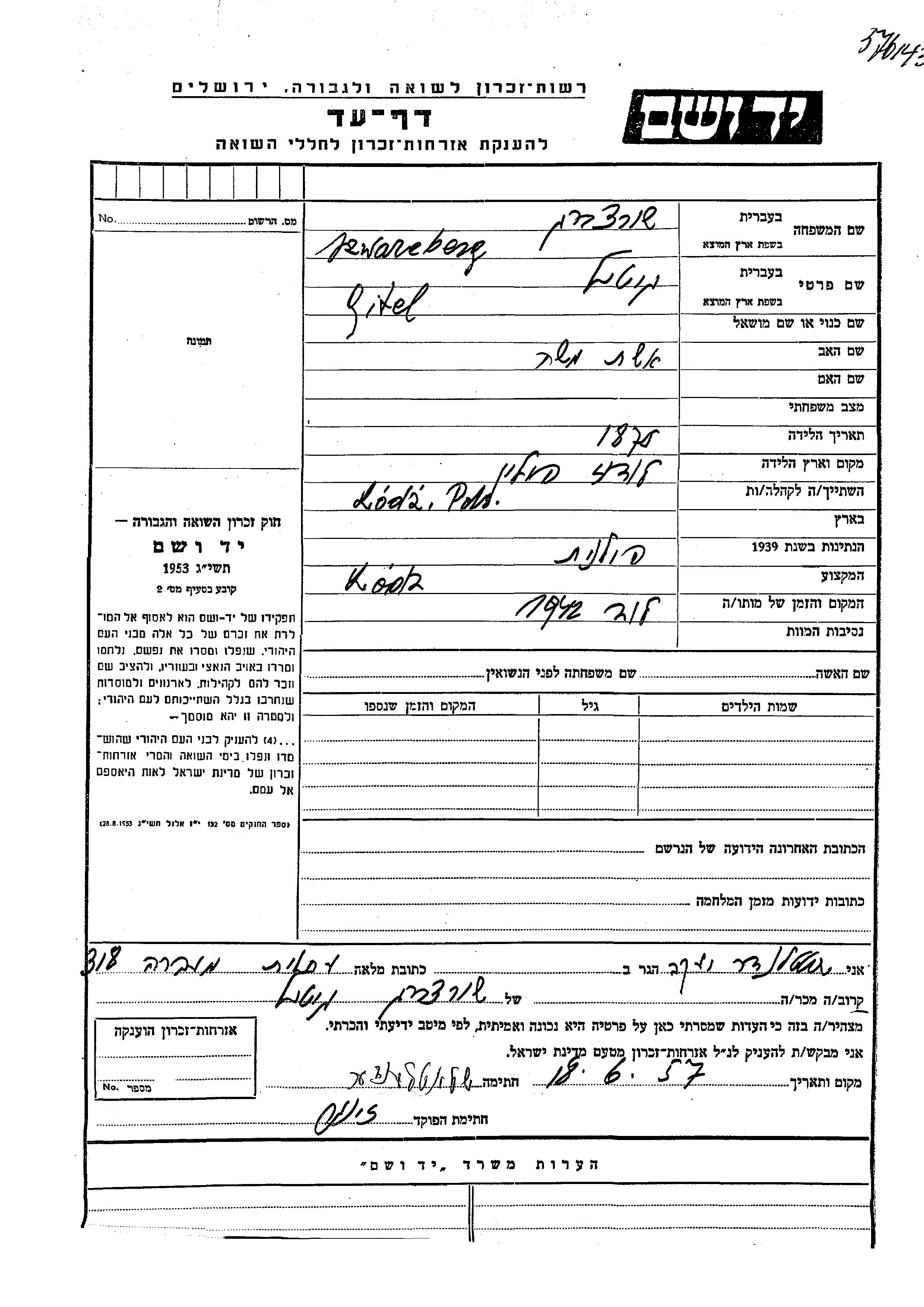 Gitil wurde in der Schoah ermordet. Todesort: Lodz, Polen im Jahr 1942.