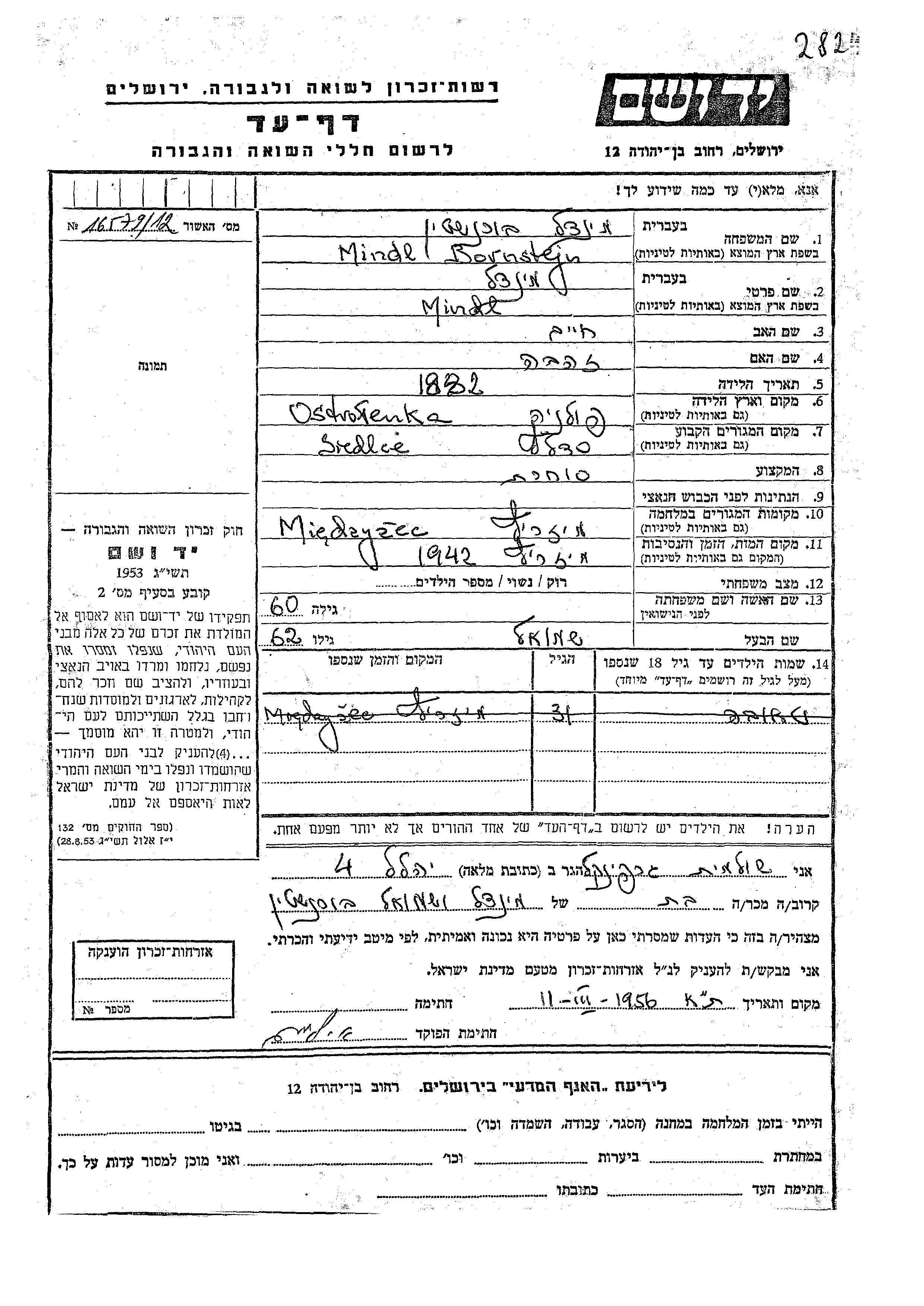Mindl wurde in der Schoah ermordet. Todesort: Miedzyrzec, Polen im Jahr 1942.