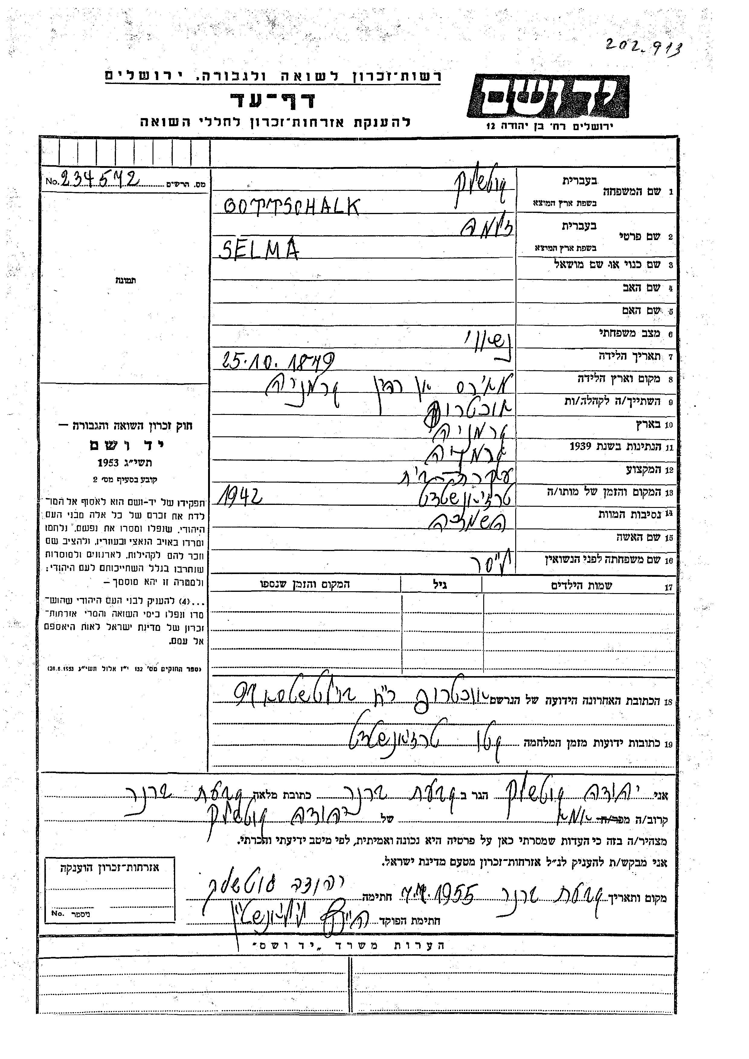 Selma wurde in der Schoah ermordet. Todesort: Theresienstadt, Tschechoslowakei im Jahr 1942.