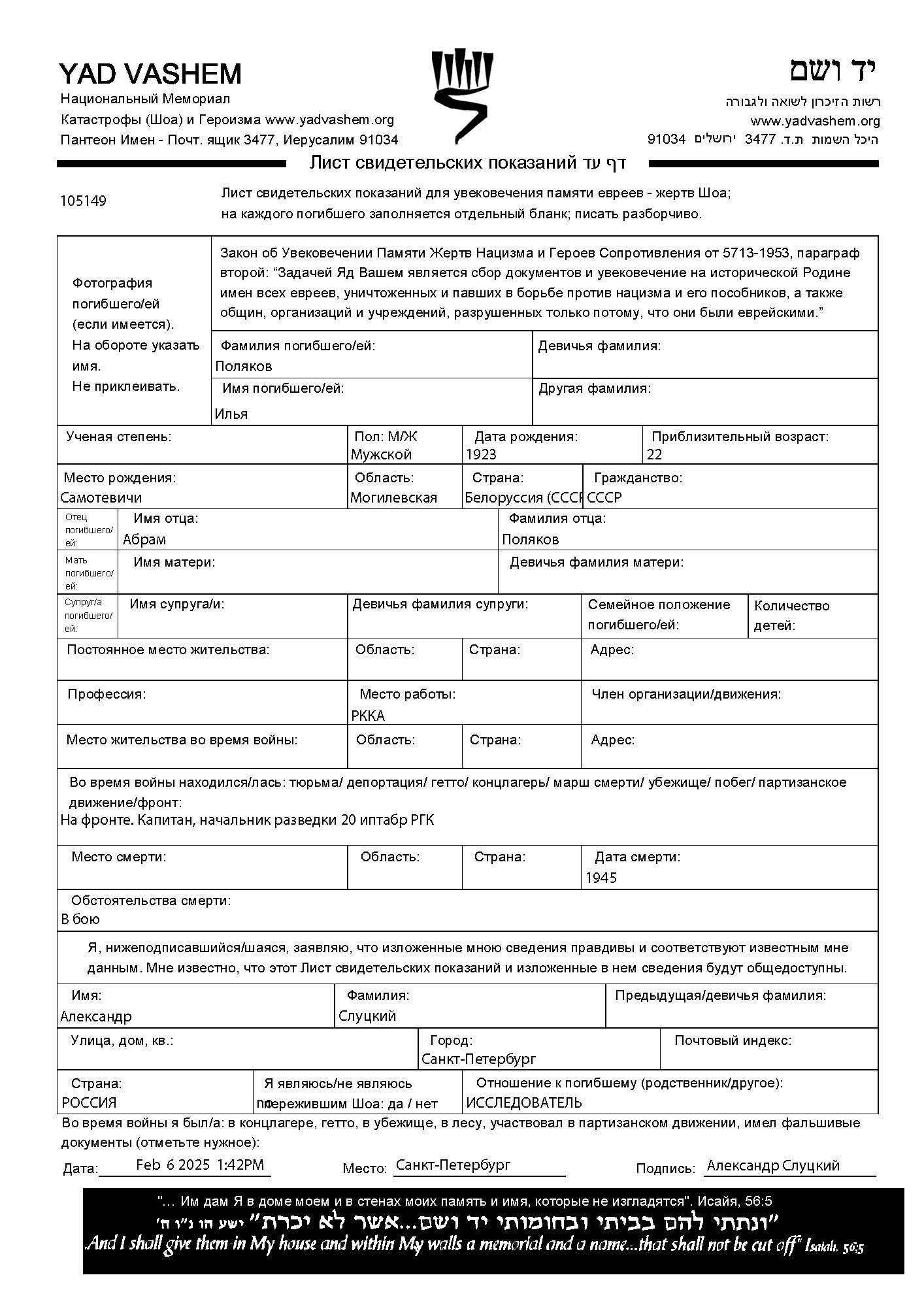 Polyakov Iliya 1923 unbekannter Ort, Gedenkblatt (digital)