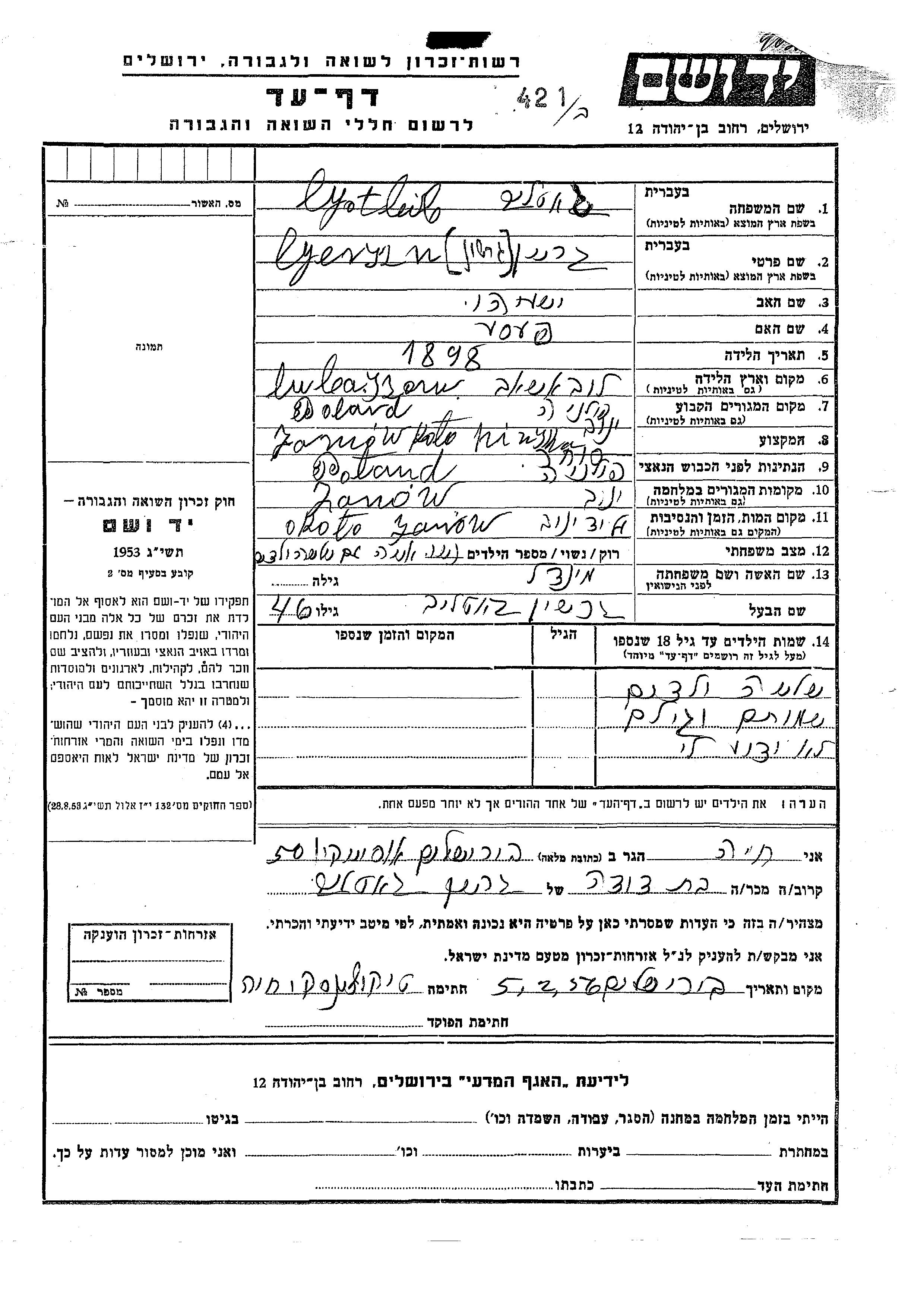 Gerszn Gotlieb wurde im Jahr 1898 in Lubieszów, Polen geboren. Er war der Sohn von Yeshayahu und Pese. Er war Kaufmann/-frau und mit Mindl Verheiratet. Vor dem Zweiten Weltkrieg lebte er in Janow, Polen. Während des Krieges war er in Janow, Polen.