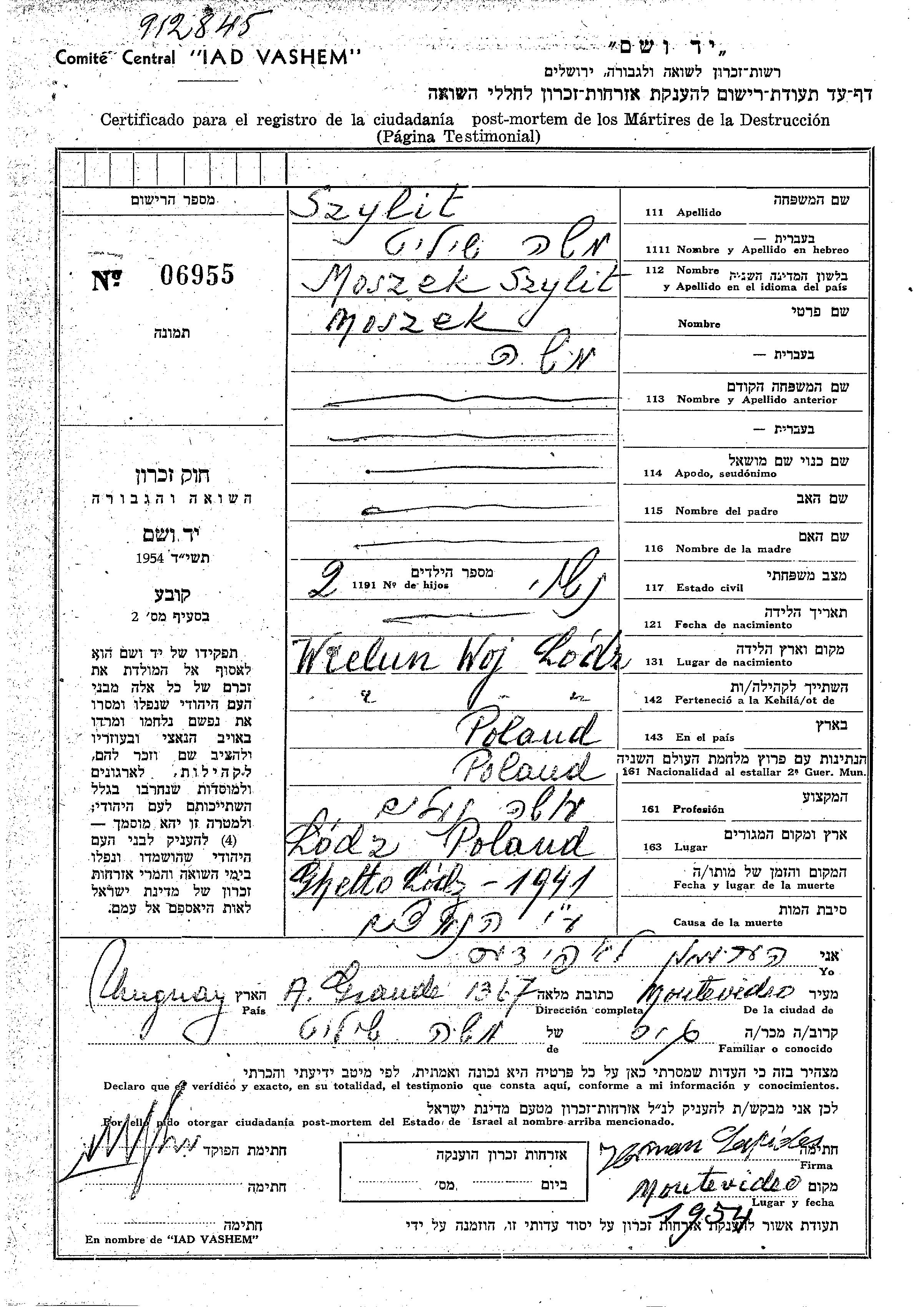Moszek Szylit wurde in Lodz, Polen geboren. Er war Schuhfabrikant und Verheiratet. Vor dem Zweiten Weltkrieg lebte er in Lodz, Polen. Während des Krieges war er in Lodz, Polen.