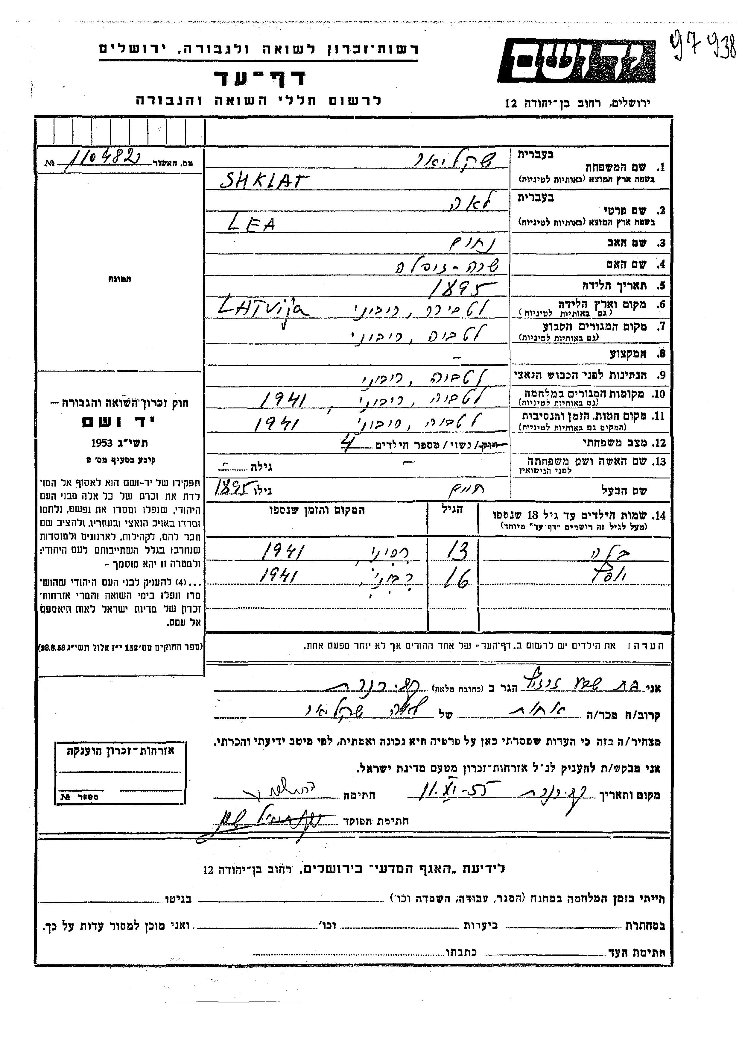 Lea wurde in der Schoah ermordet. Todesort: Lettland im Jahr 1941.