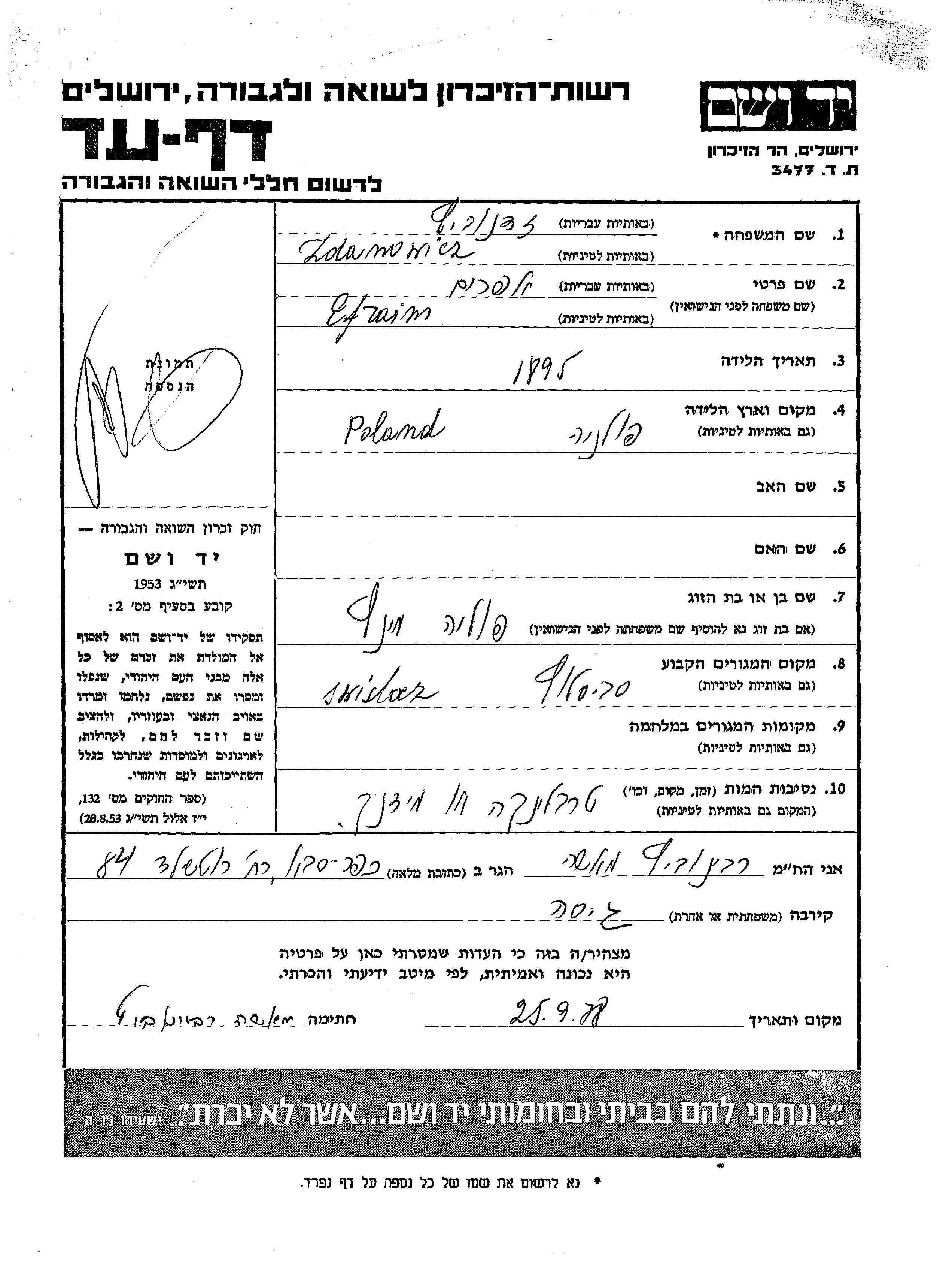 Efraim wurde in der Schoah ermordet. Todesort: Treblinka, Polen.