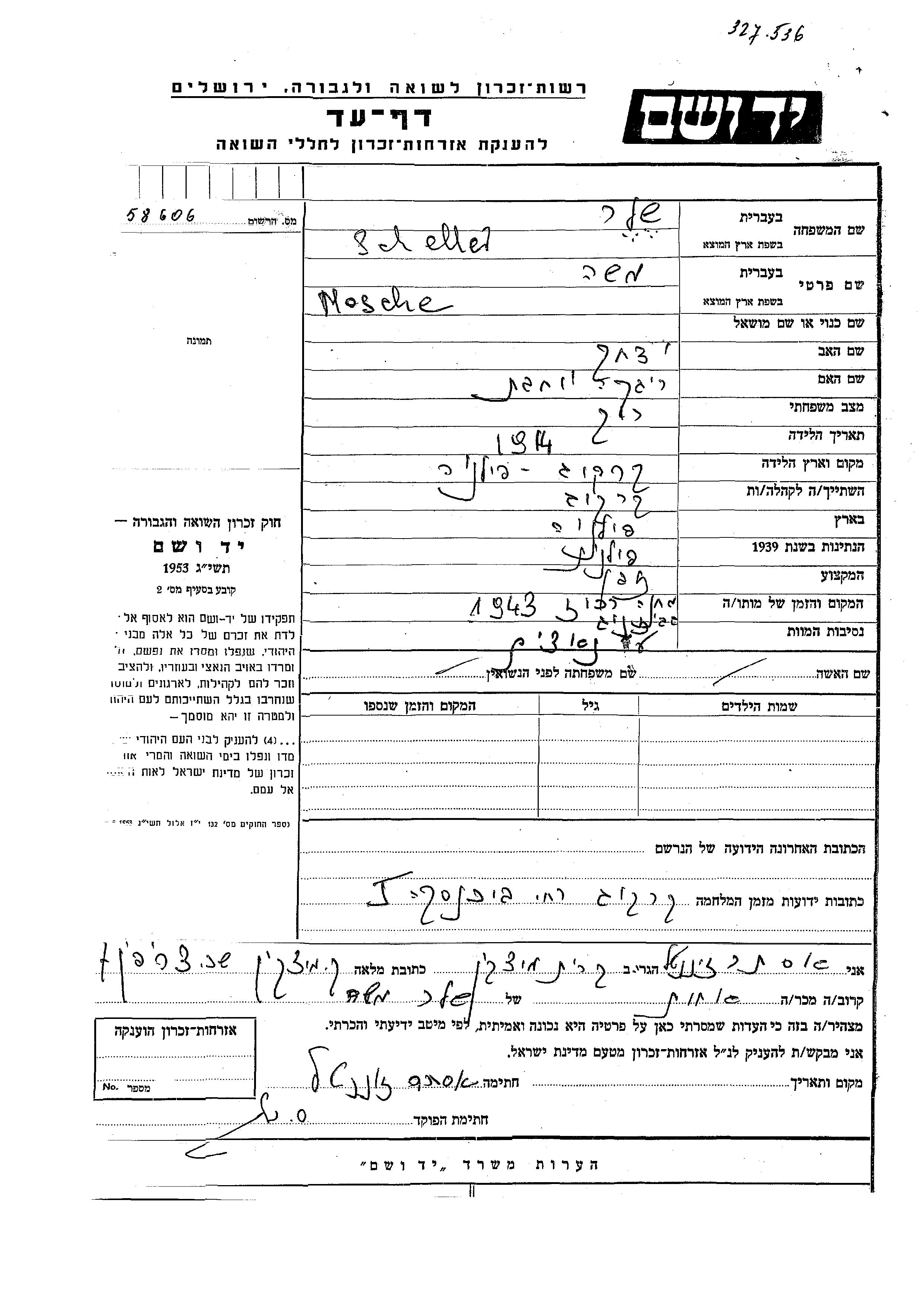 Mosche wurde in der Schoah ermordet. Todesort: Brzeznik, Polen im Jahr 1943.