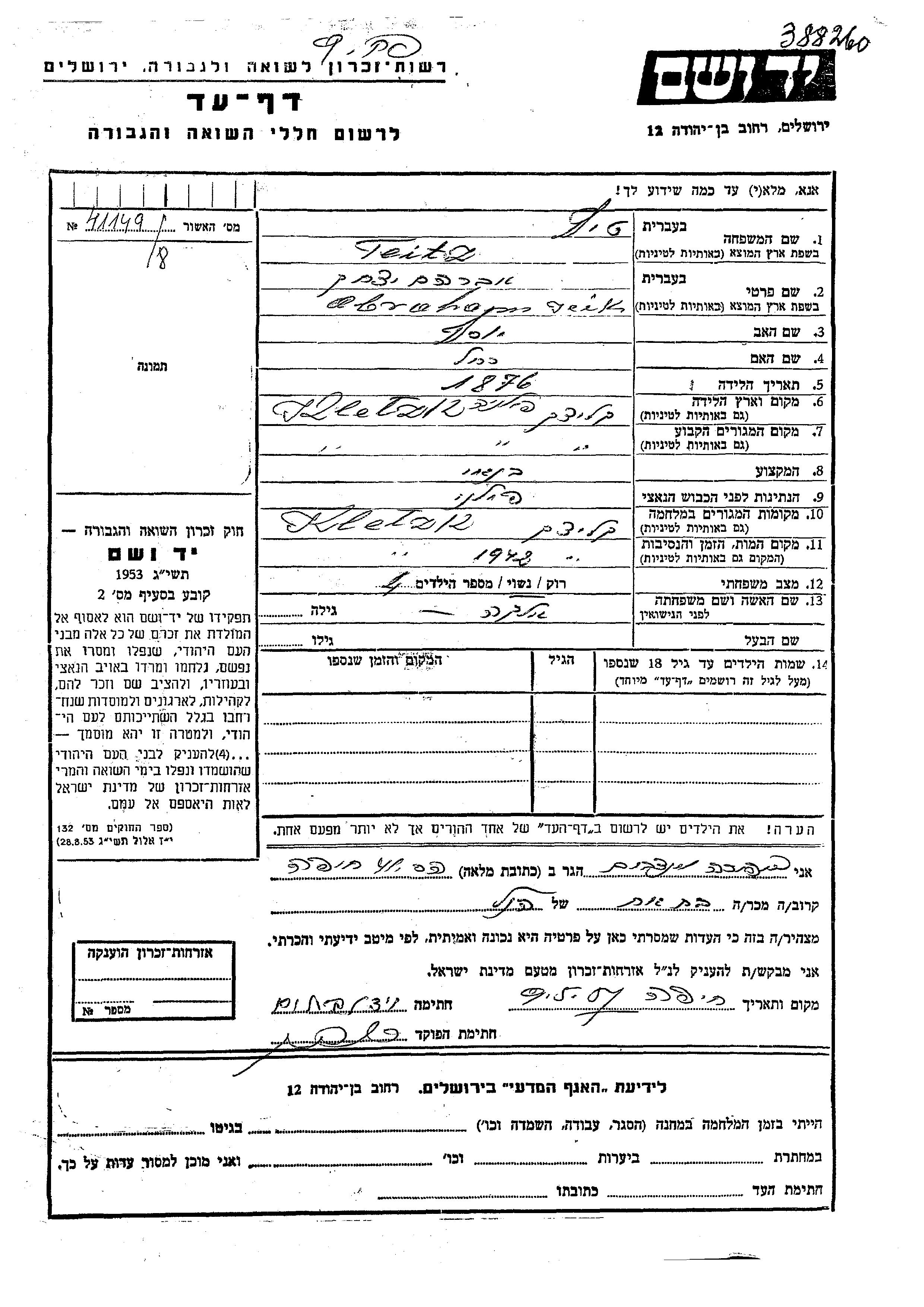 Abraham Icik wurde in der Schoah ermordet. Todesort: Kletzk, Polen im Jahr 1942.