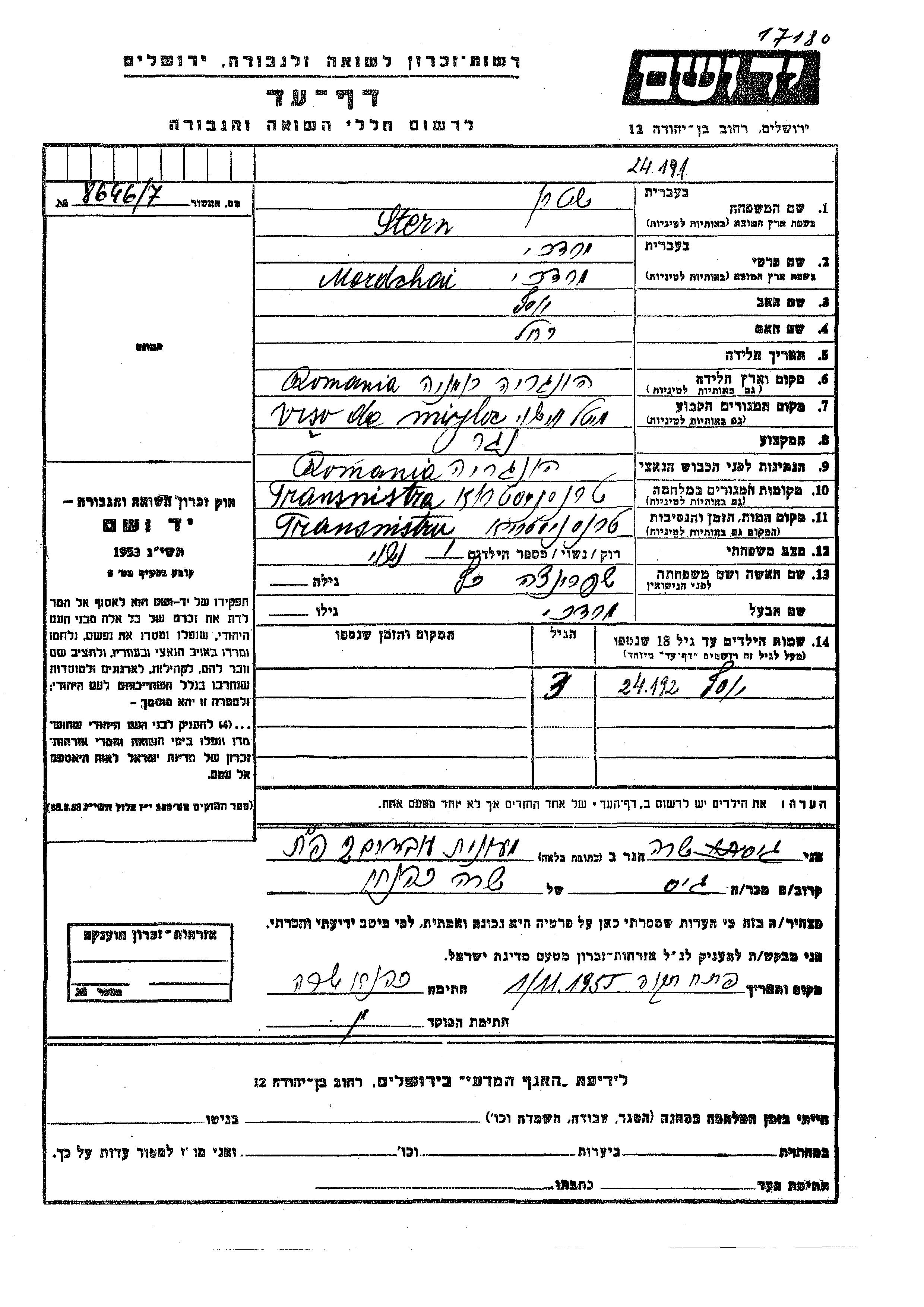 Mordchai wurde in der Schoah ermordet. Todesort: Transnistria, Ukraine (UdSSR).
