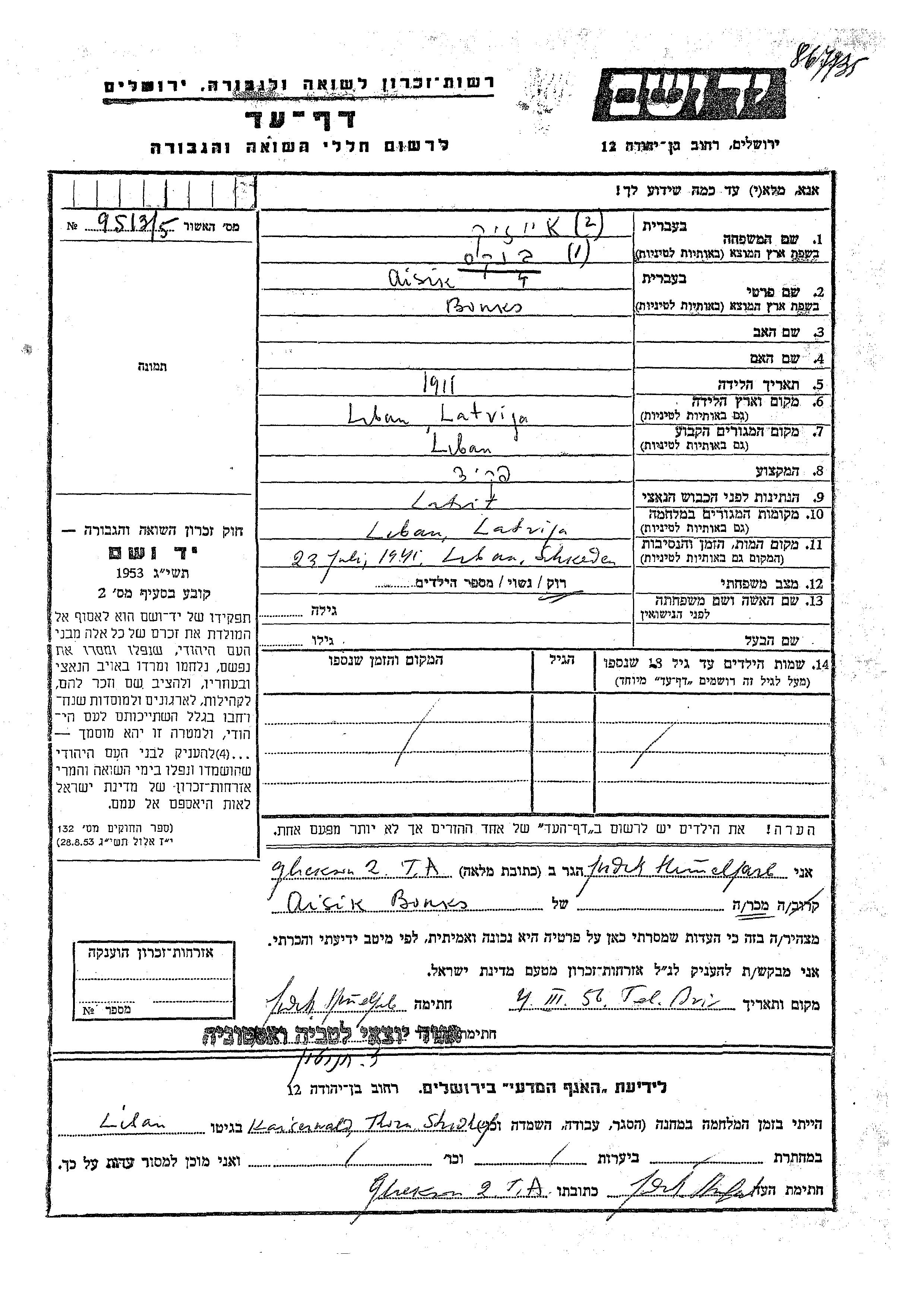 Aisik wurde in der Schoah ermordet. Todesort: Libau, Lettland im Jahr 23/07/1941.