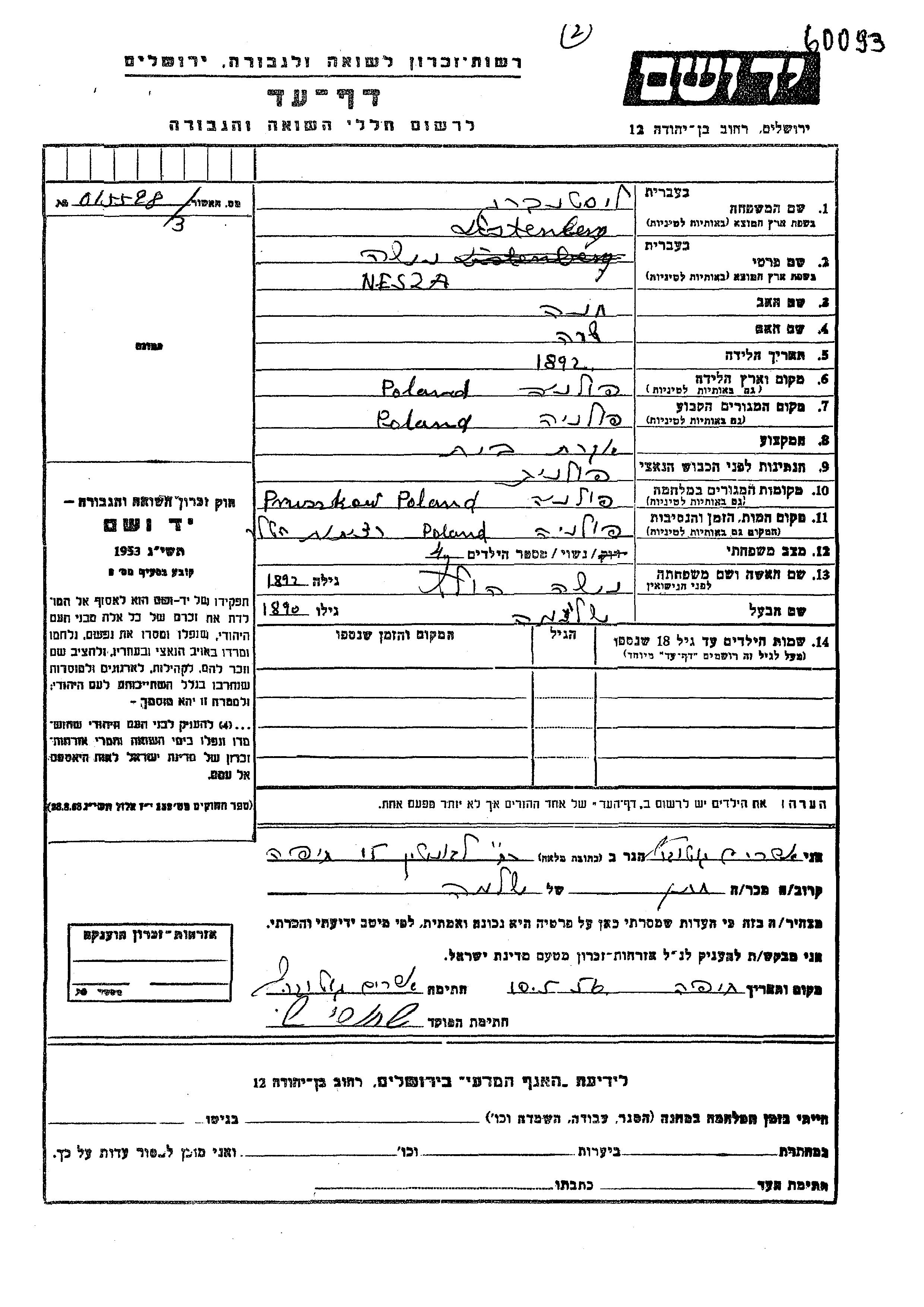 Nesza wurde in der Schoah ermordet. Todesort: Polen.