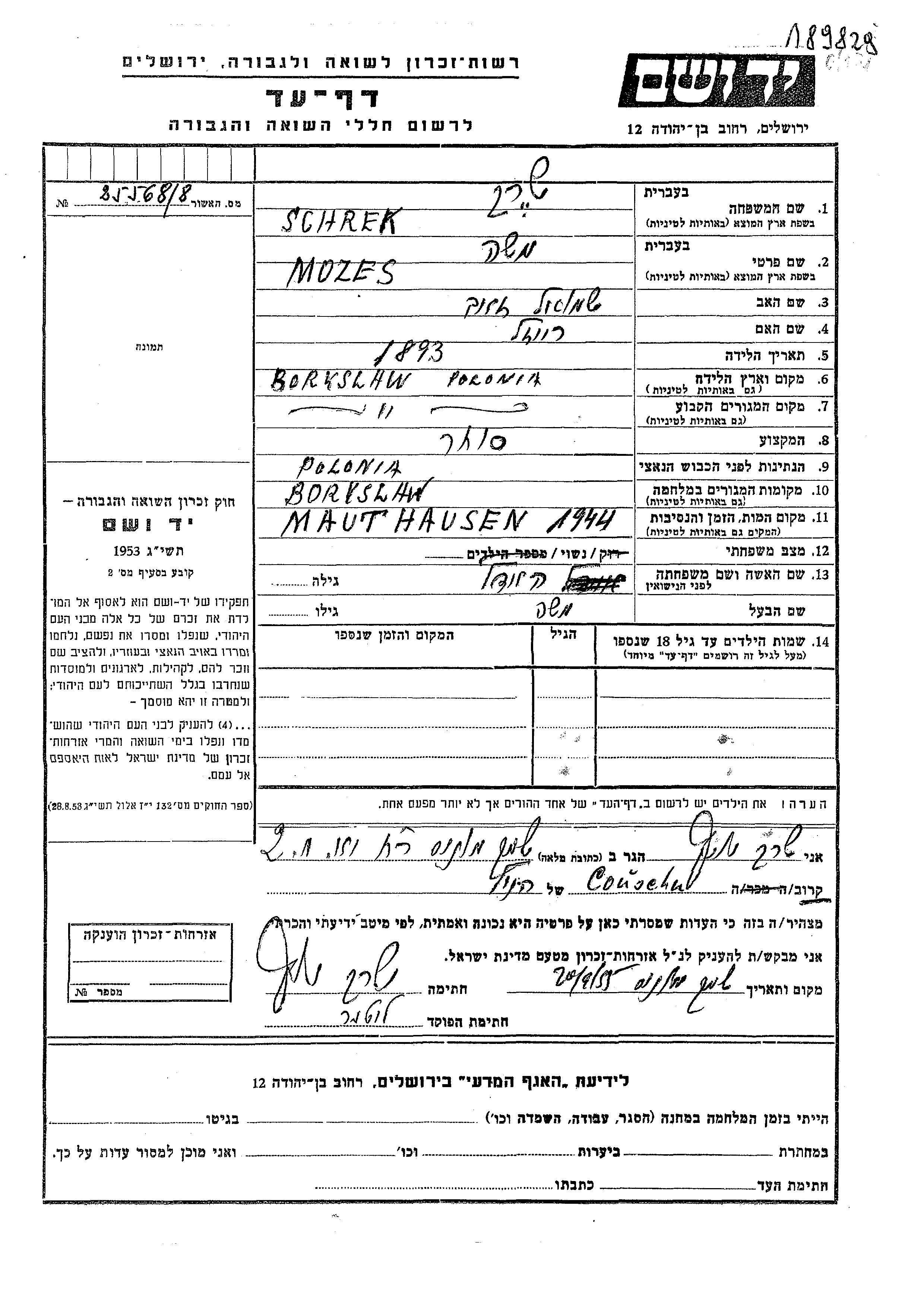 Moshe wurde in der Schoah ermordet. Todesort: Mauthausen, Österreich im Jahr 1944.