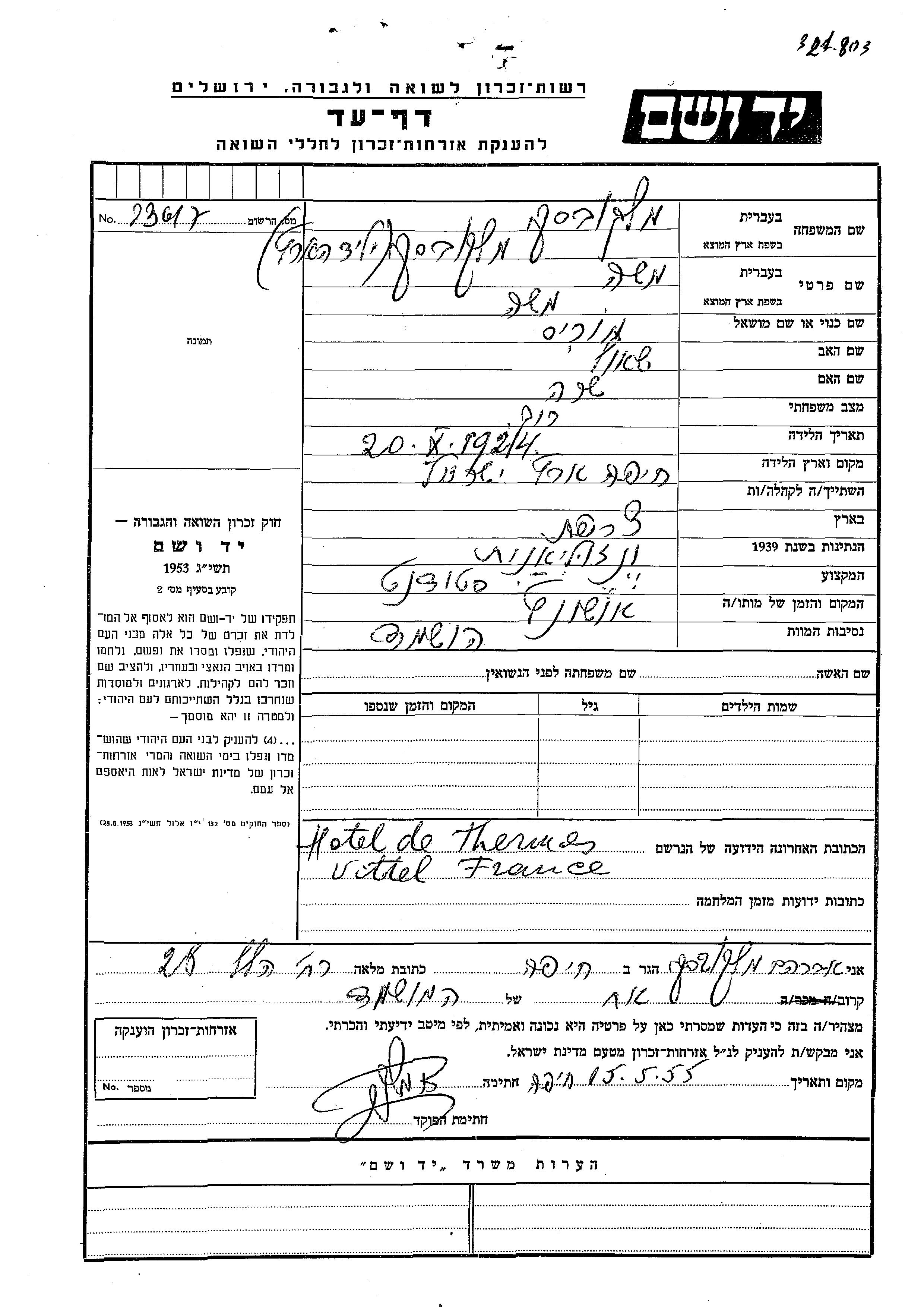 Moshe Moris wurde in der Schoah ermordet.