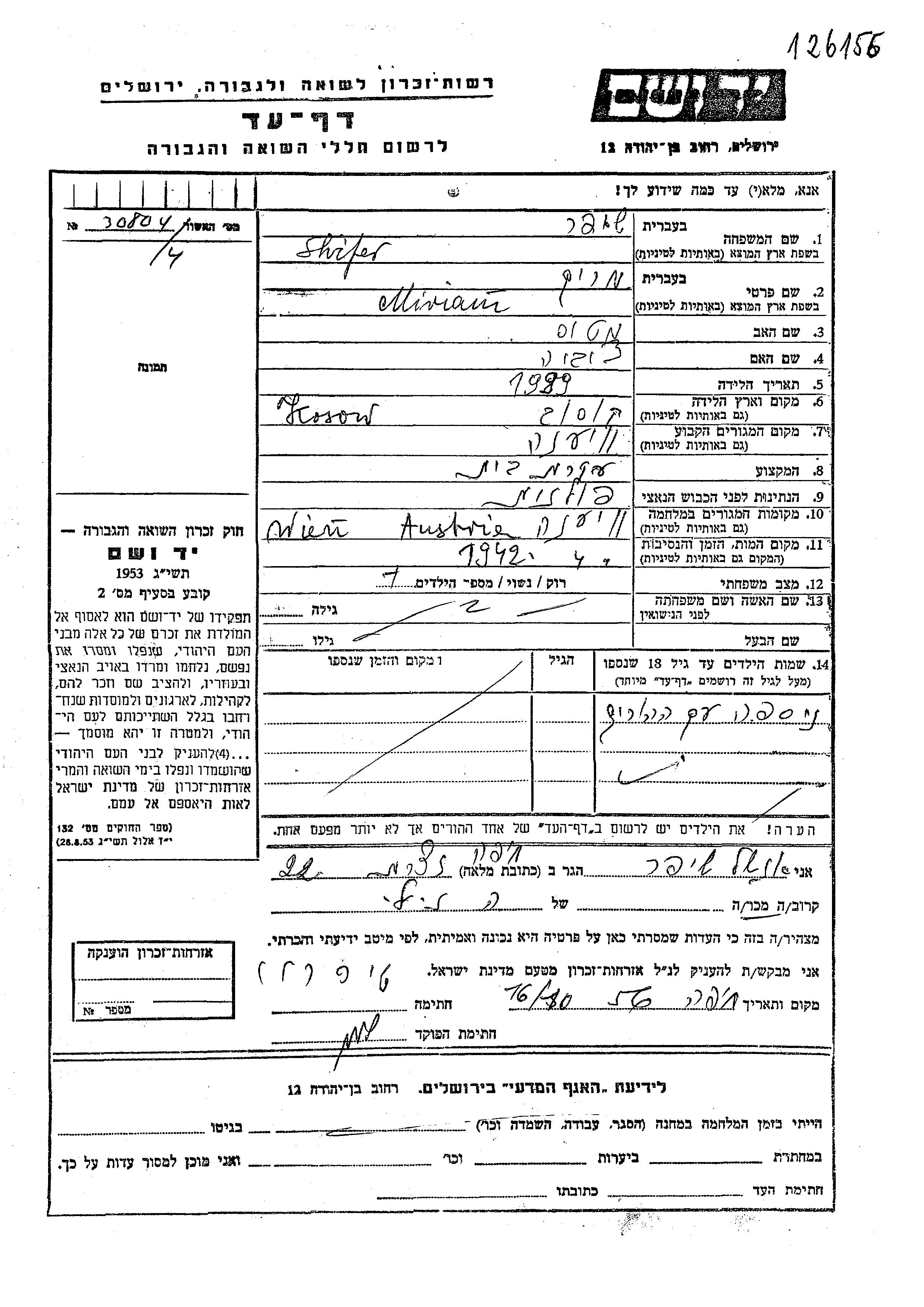 Miriam Shifer wurde im Jahr 1889 in Kosow, Polen geboren. Sie war die Tochter von Matus und Tzivia. Sie war Hausfrau und Verheiratet. Vor dem Zweiten Weltkrieg lebte sie in Wien, Österreich. Während des Krieges war sie in Wien, Österreich.