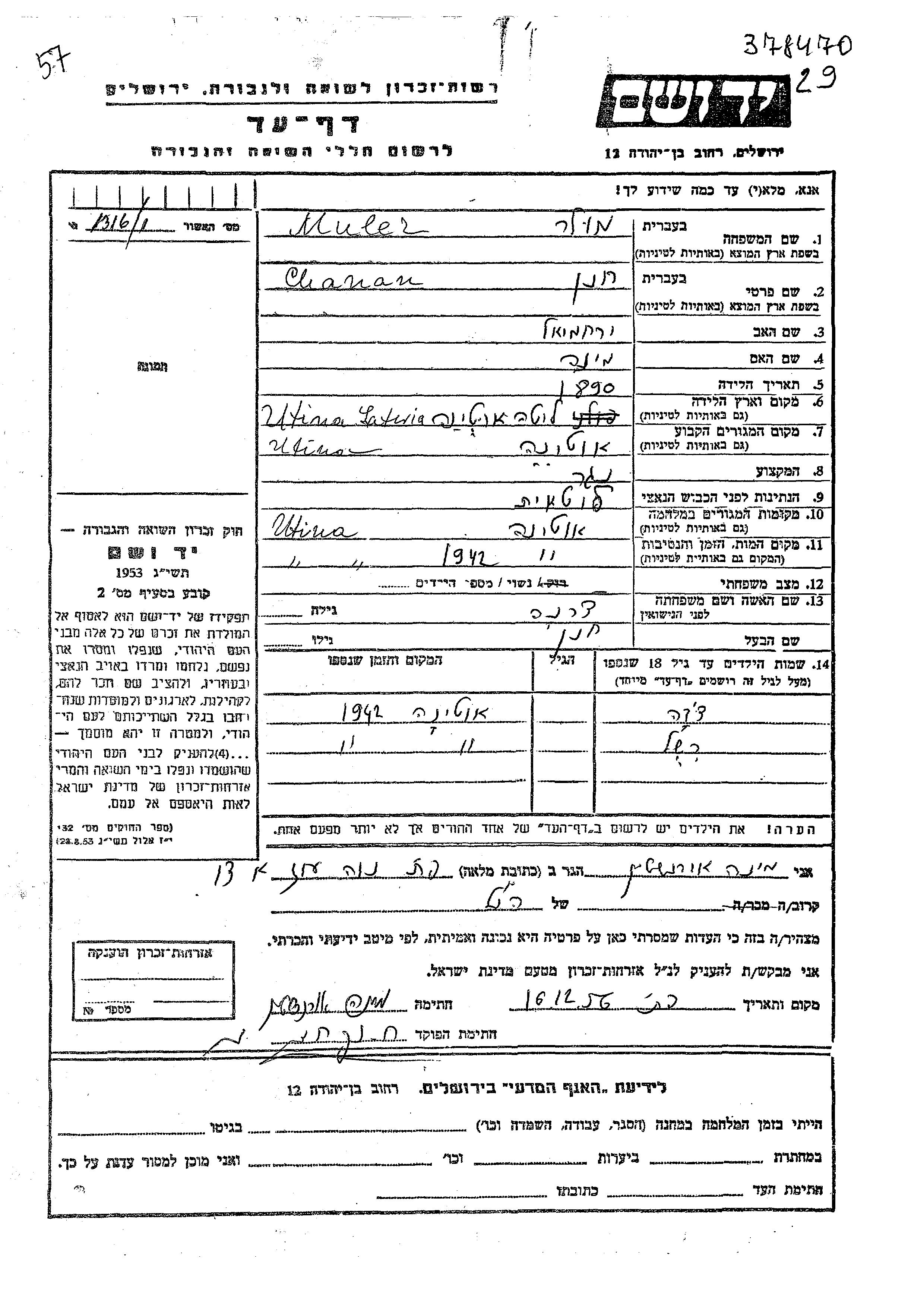 Chanan Khanan wurde in der Schoah ermordet. Todesort: Utena, Litauen im Jahr 1942.