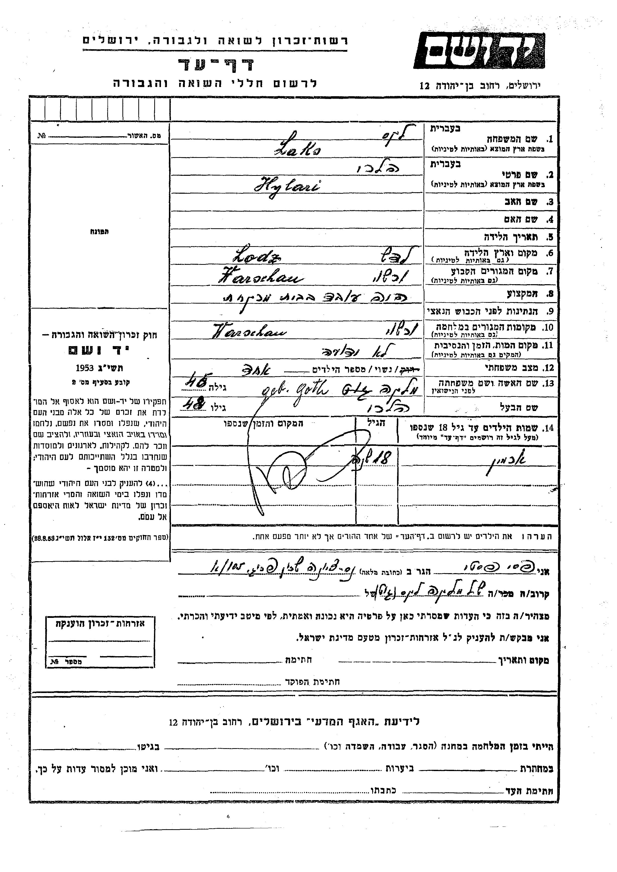 Hylari Laks wurde in Lodz, Polen geboren. Er war עובד בבית מרקחת und mit Malka, geb. Goth Gut Verheiratet. Vor dem Zweiten Weltkrieg lebte er in Warszawa, Polen. Während des Krieges war er in Warszawa, Polen.