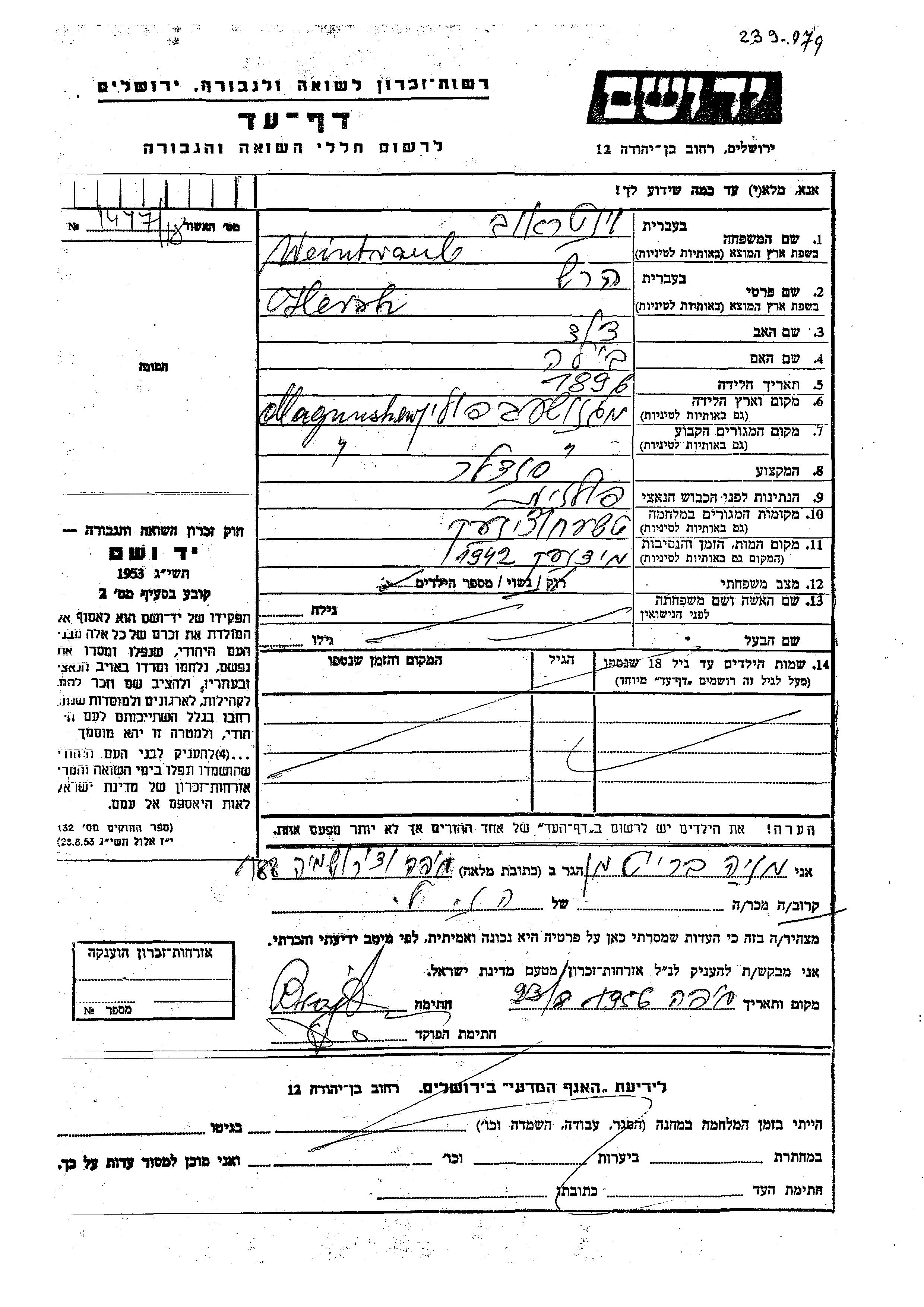 Hersh wurde in der Schoah ermordet. Todesort: Majdanek, Polen im Jahr 1942.