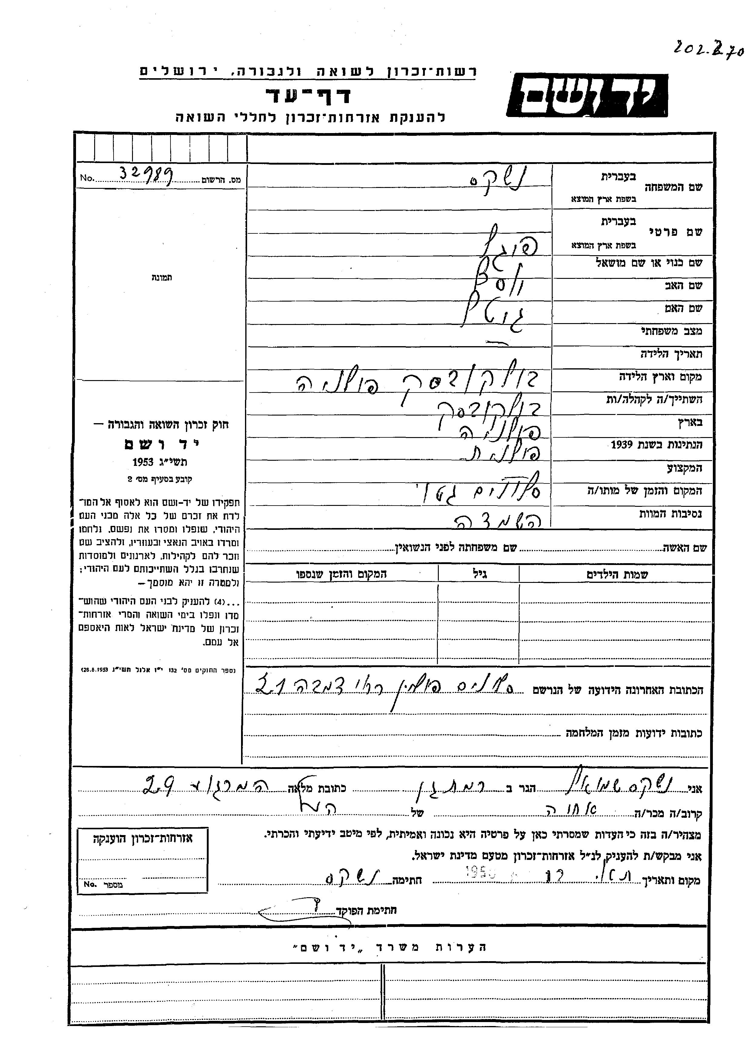 Feigl wurde in der Schoah ermordet. Todesort: Slonim, Polen.