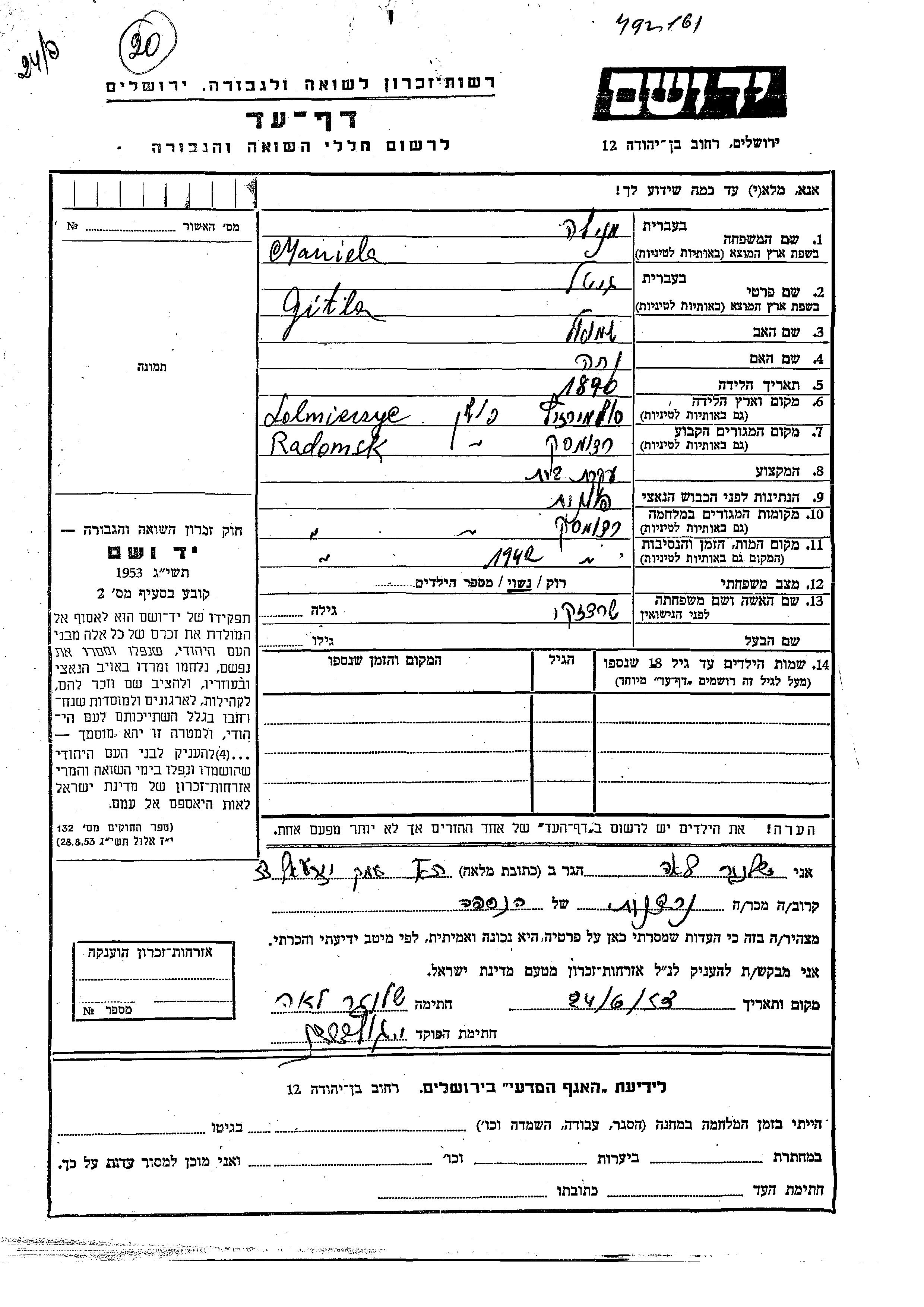 Gitla wurde in der Schoah ermordet. Todesort: Radomsko, Polen im Jahr 1942.