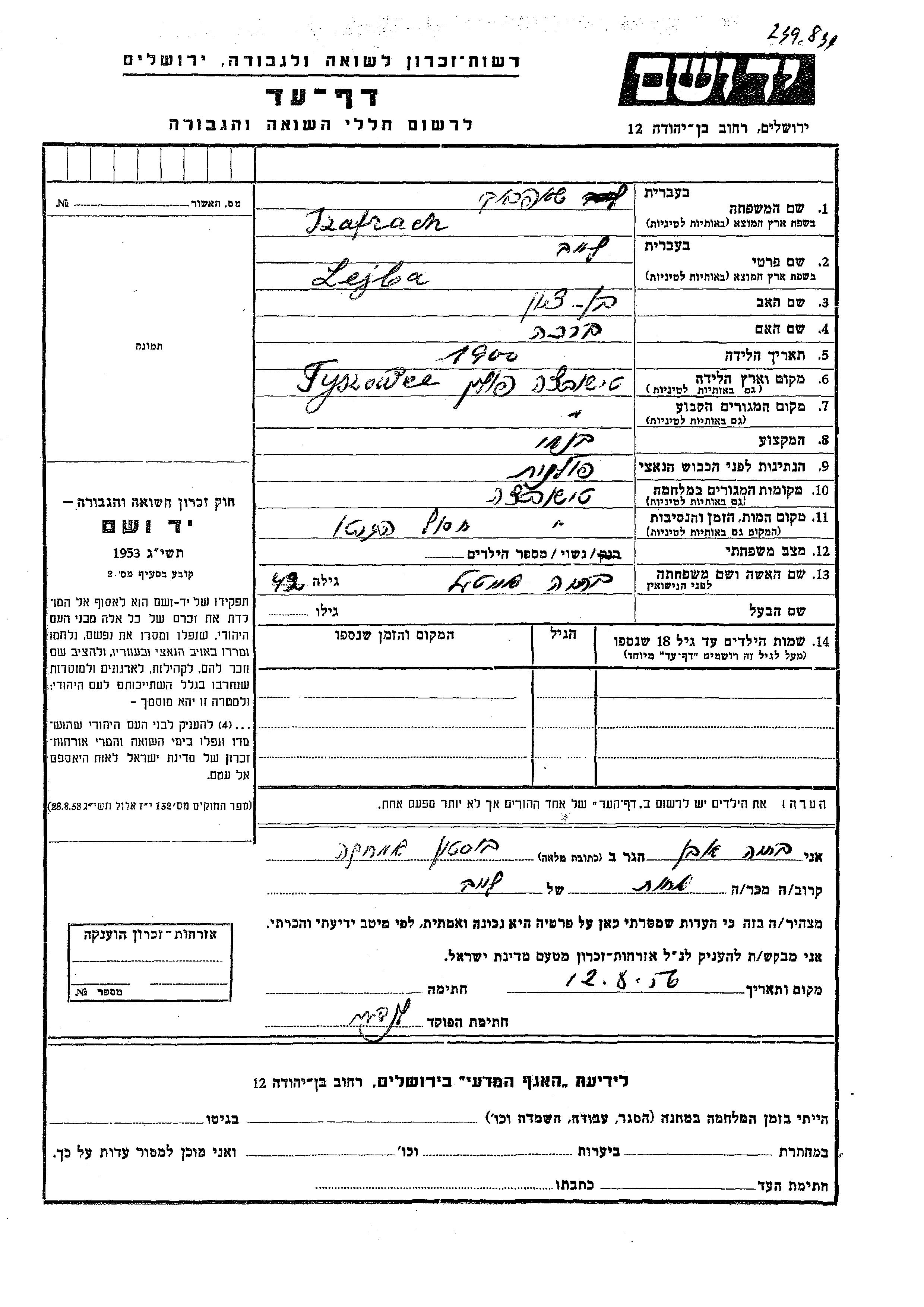 Lejba Leib wurde in der Schoah ermordet. Todesort: Tyszowce, Polen.