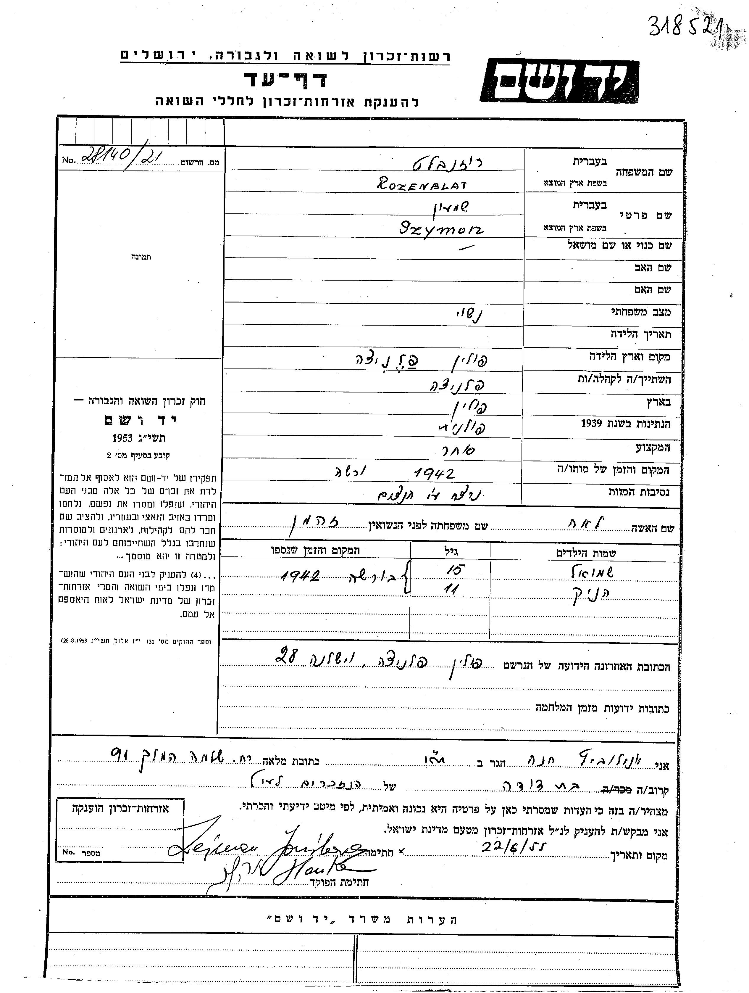 Szymon wurde in der Schoah ermordet. Todesort: Warsaw, Polen im Jahr 1942.