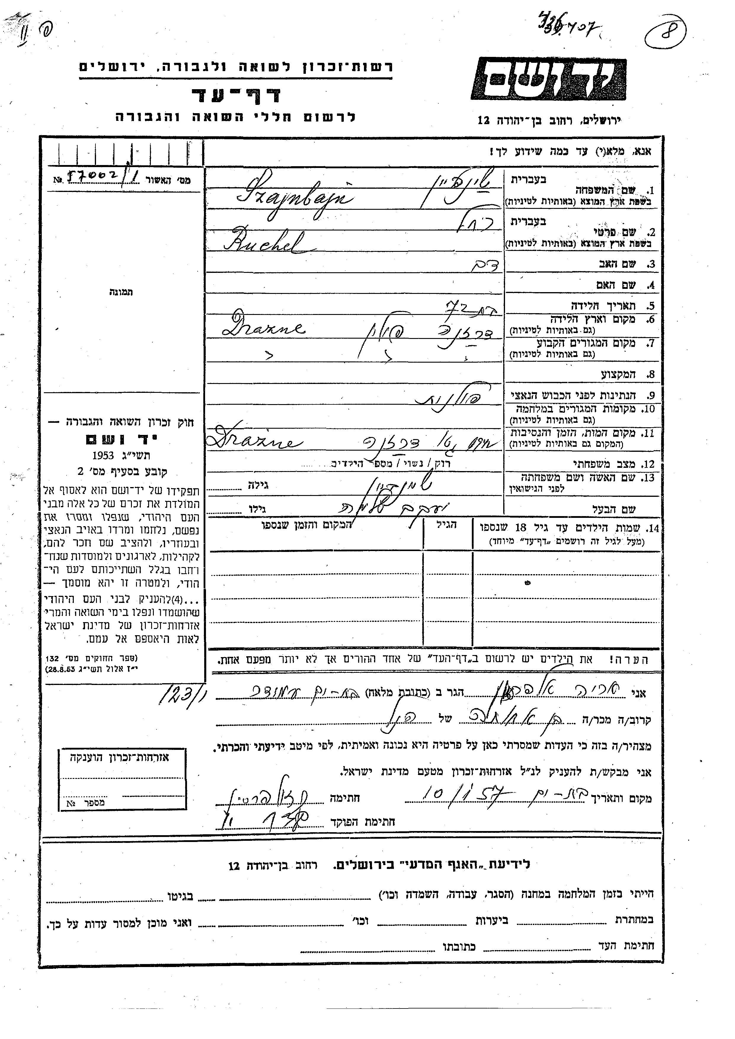Ruchel wurde in der Schoah ermordet. Todesort: Drazna, Polen im Jahr 1942.
