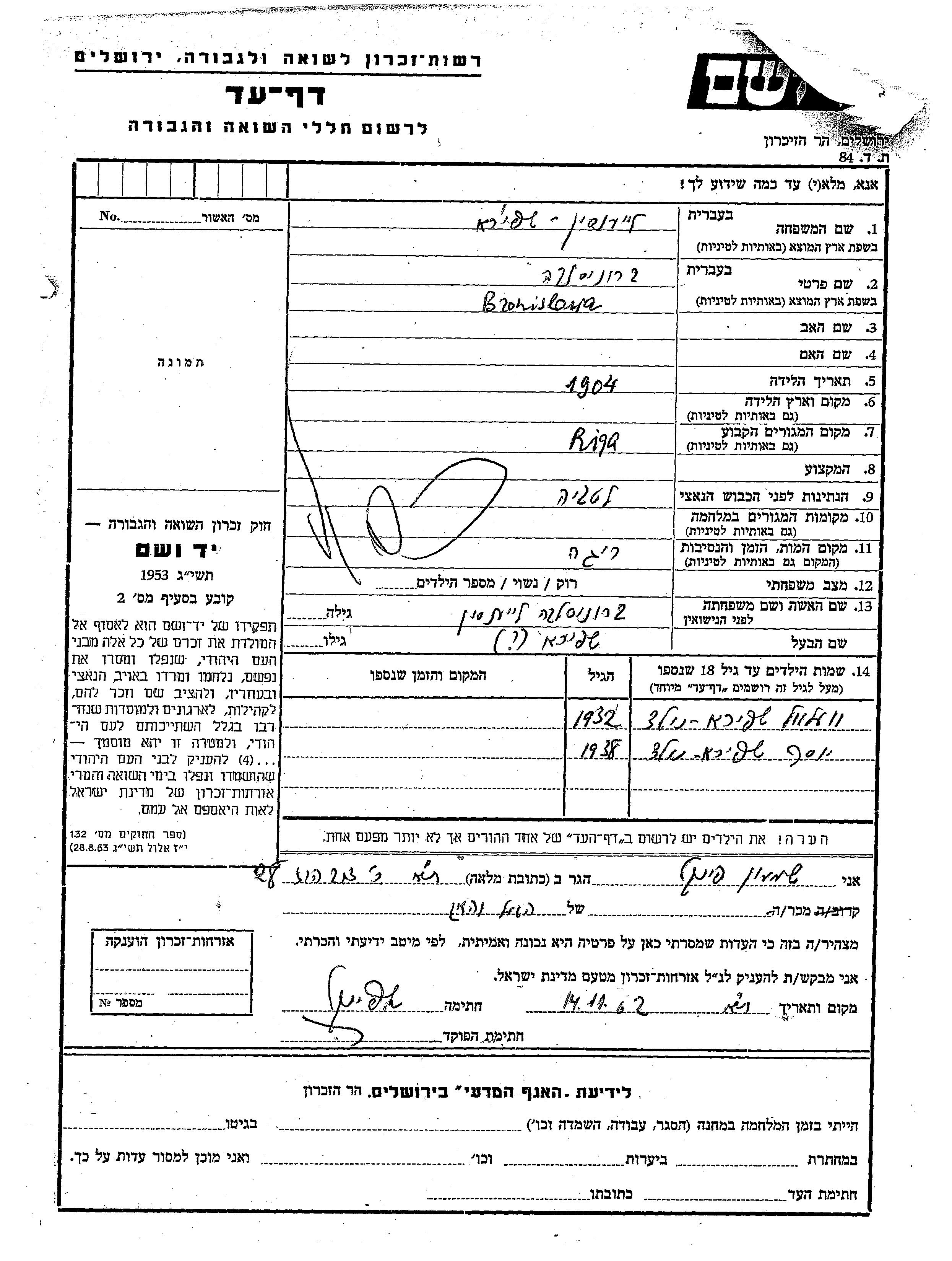 Bronislawa wurde in der Schoah ermordet. Todesort: Riga, Lettland.