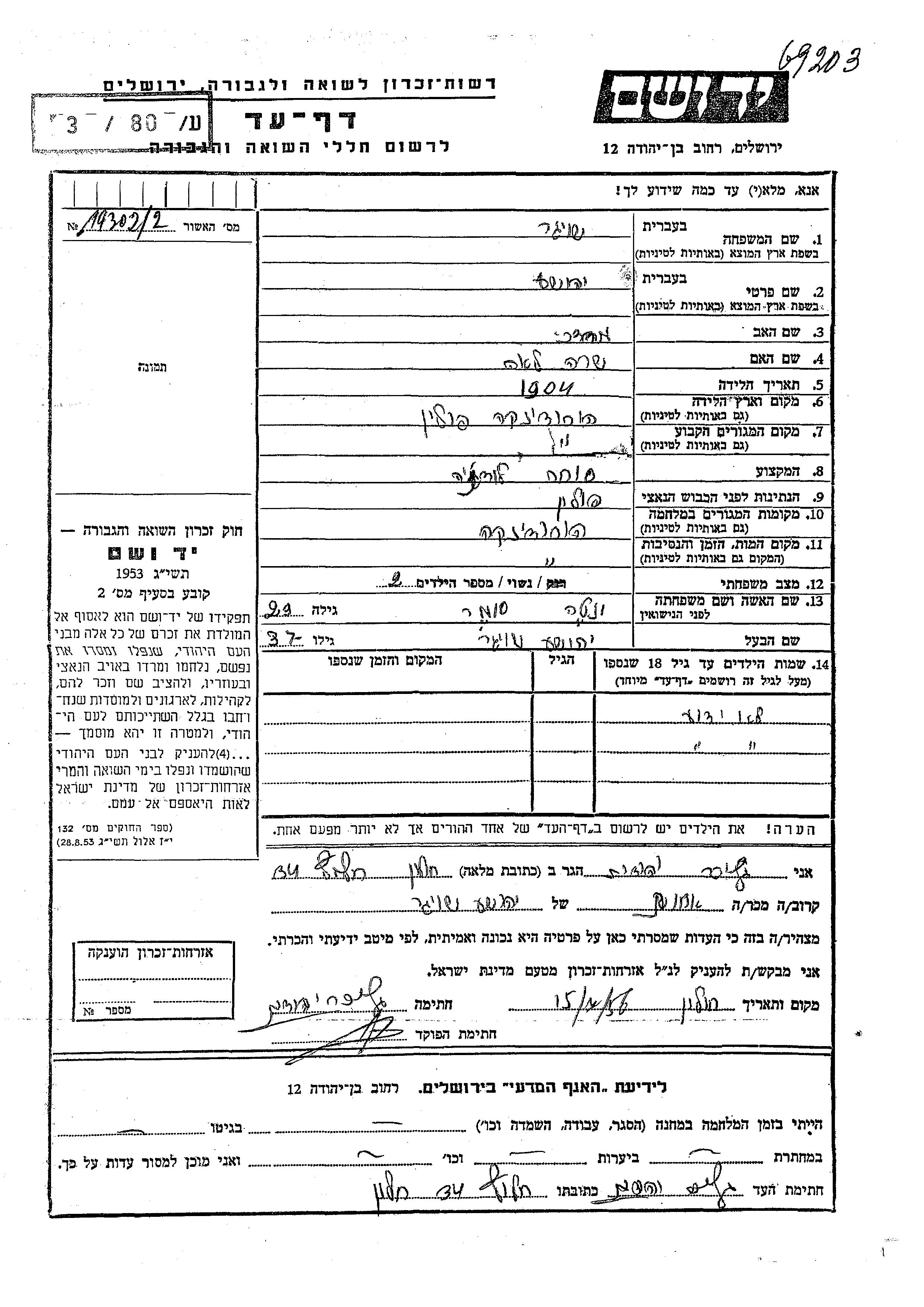 Shveiger Yehoshua 1904 unbekannter Ort, Gedenkblatt