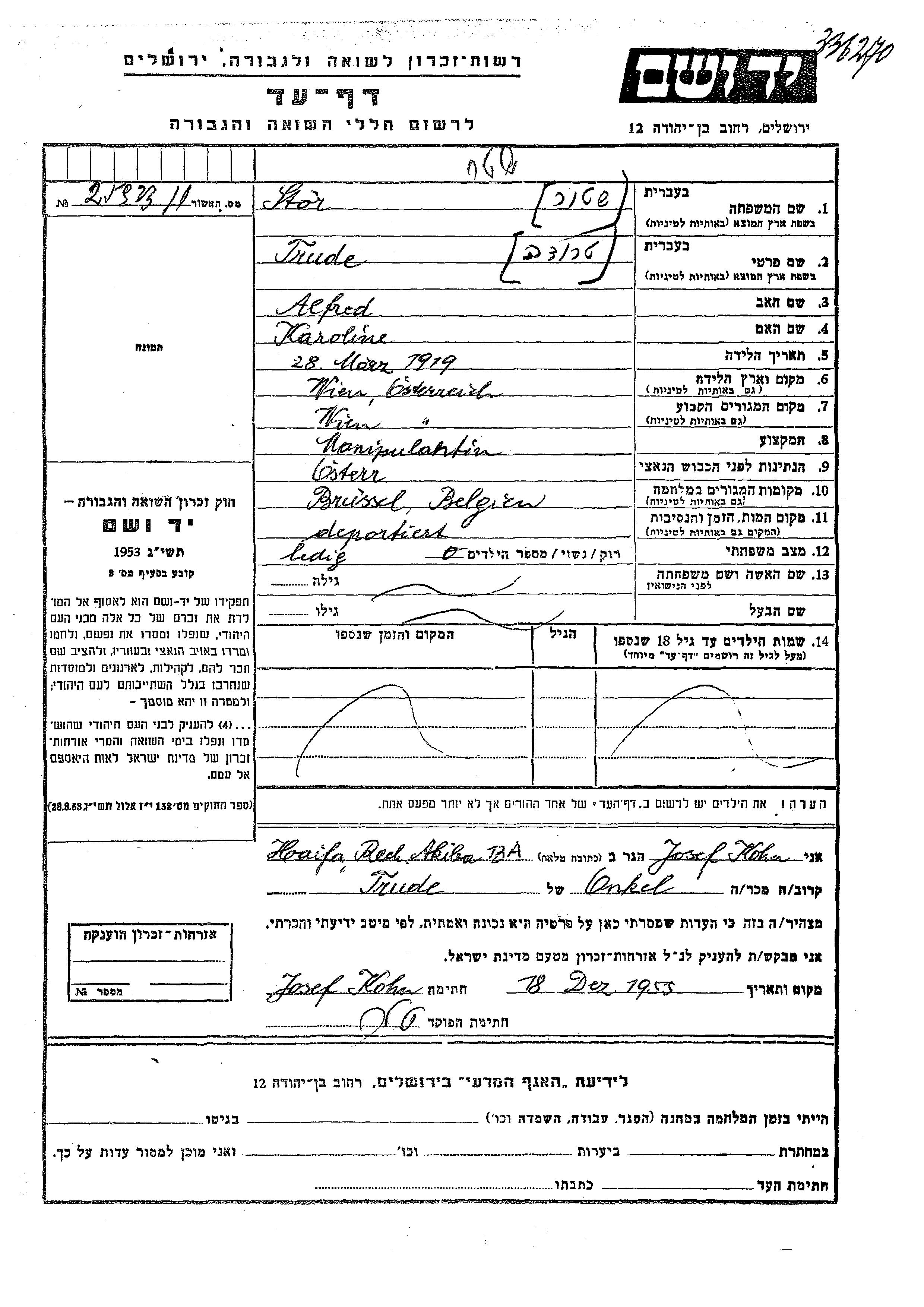 Trude Star Shter wurde im Jahr 1919 in Wien, Österreich geboren. Sie war die Tochter von Alfred und Karoline. Vor dem Zweiten Weltkrieg lebte sie in Wien, Österreich. Während des Krieges war sie in Brussels, Belgien.