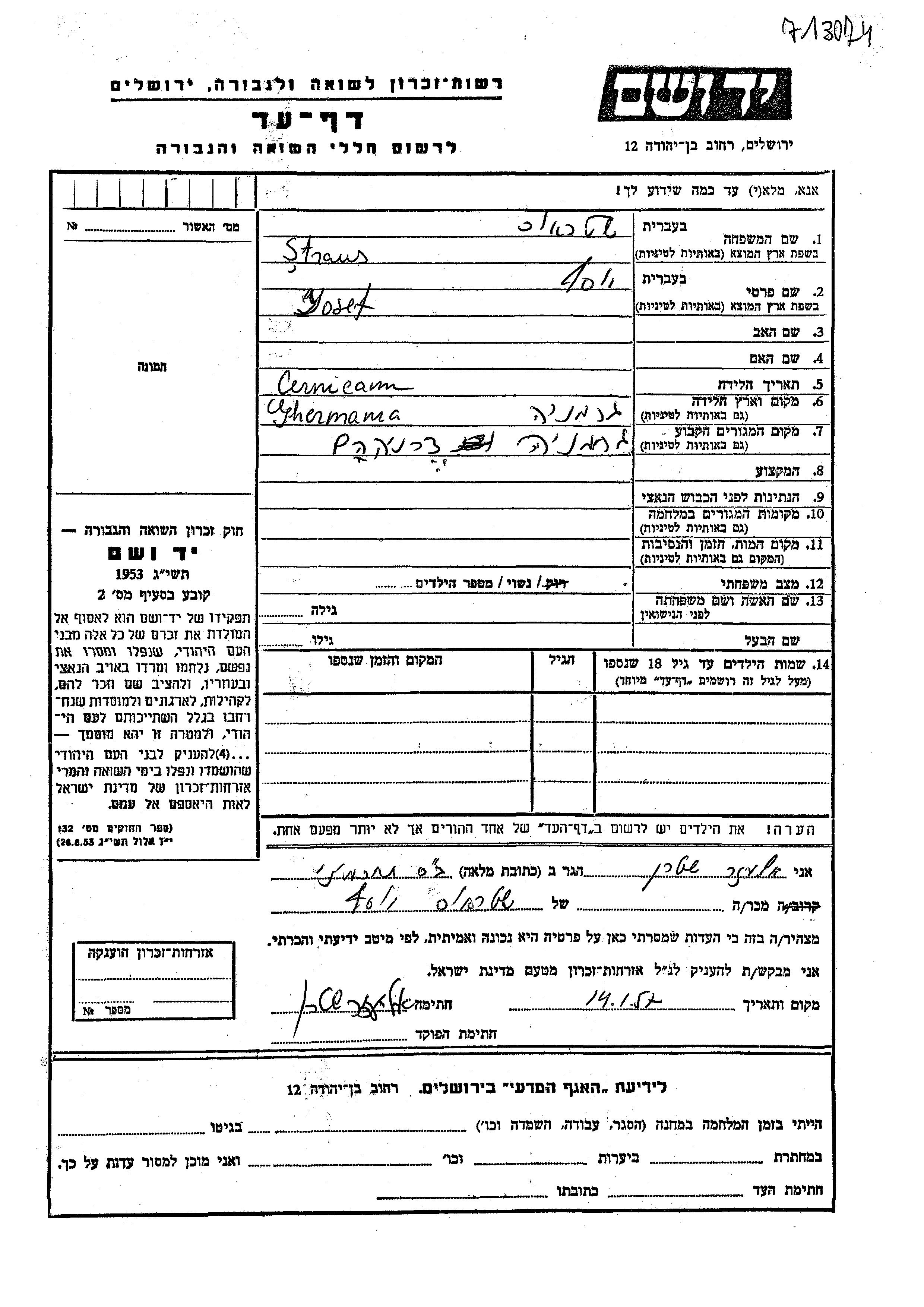 Josef Straus wurde in Doernigheim, Deutsches Reich geboren. Er war Verheiratet. Vor dem Zweiten Weltkrieg lebte er in Doernigheim, Deutsches Reich.